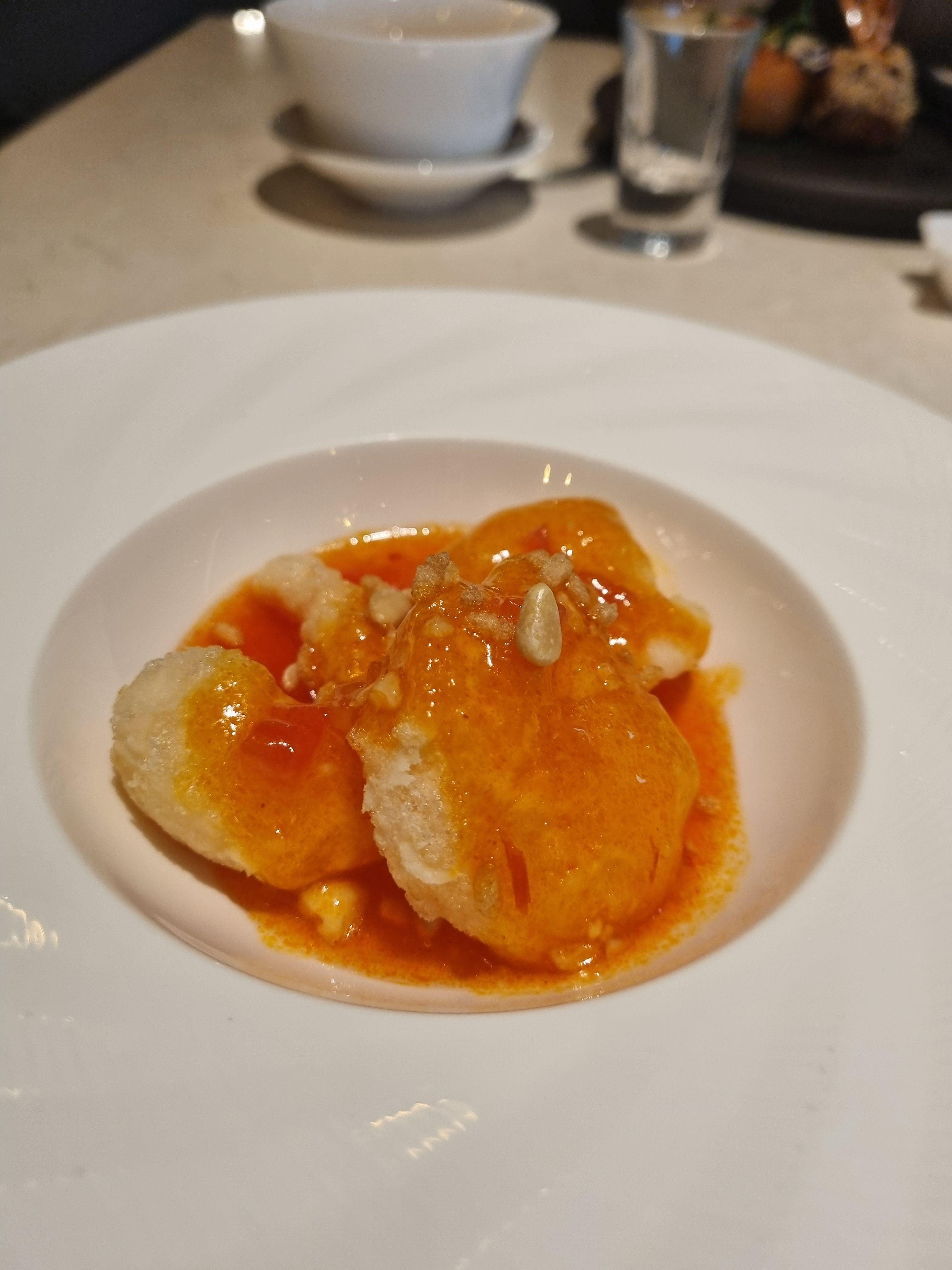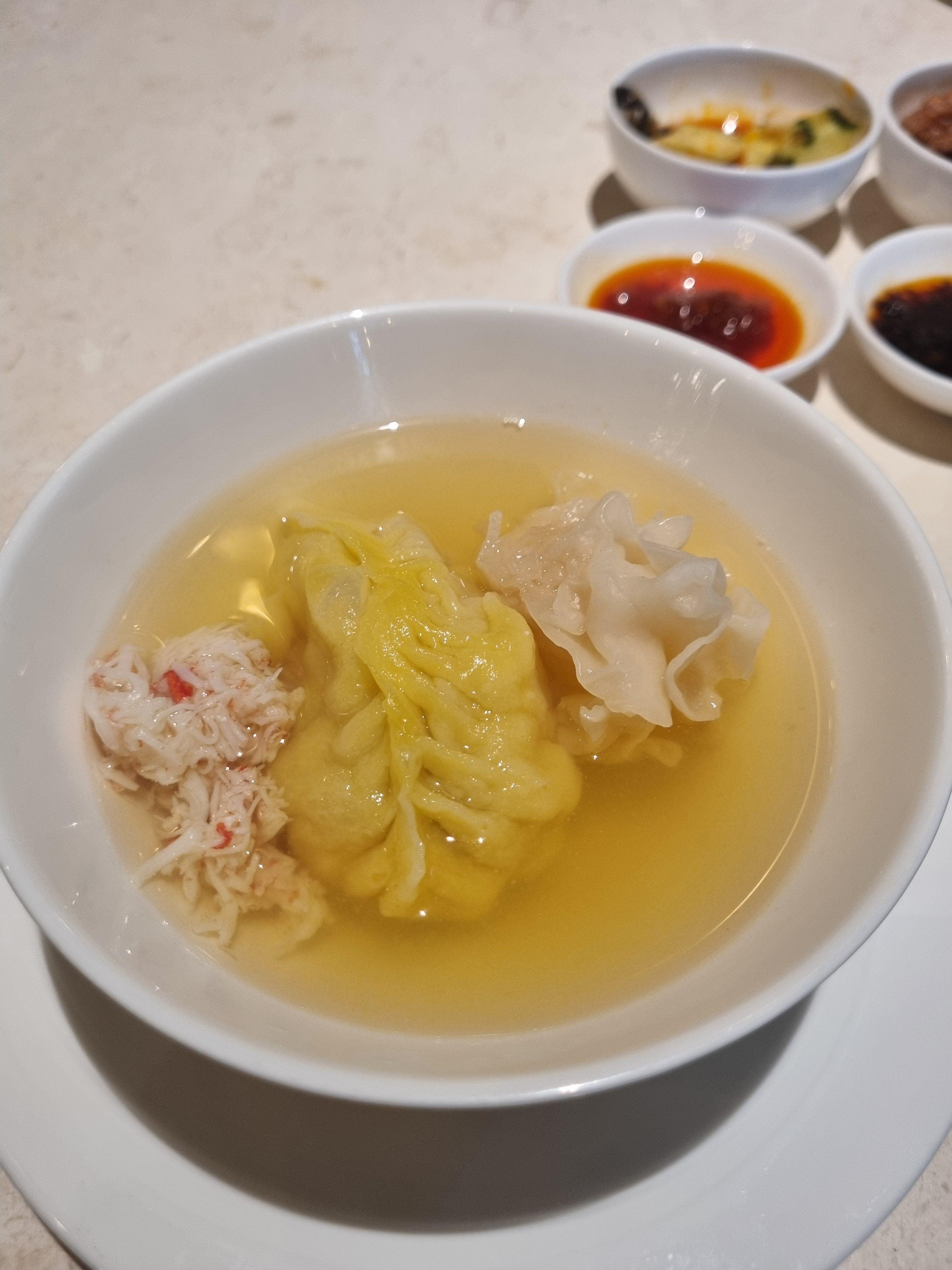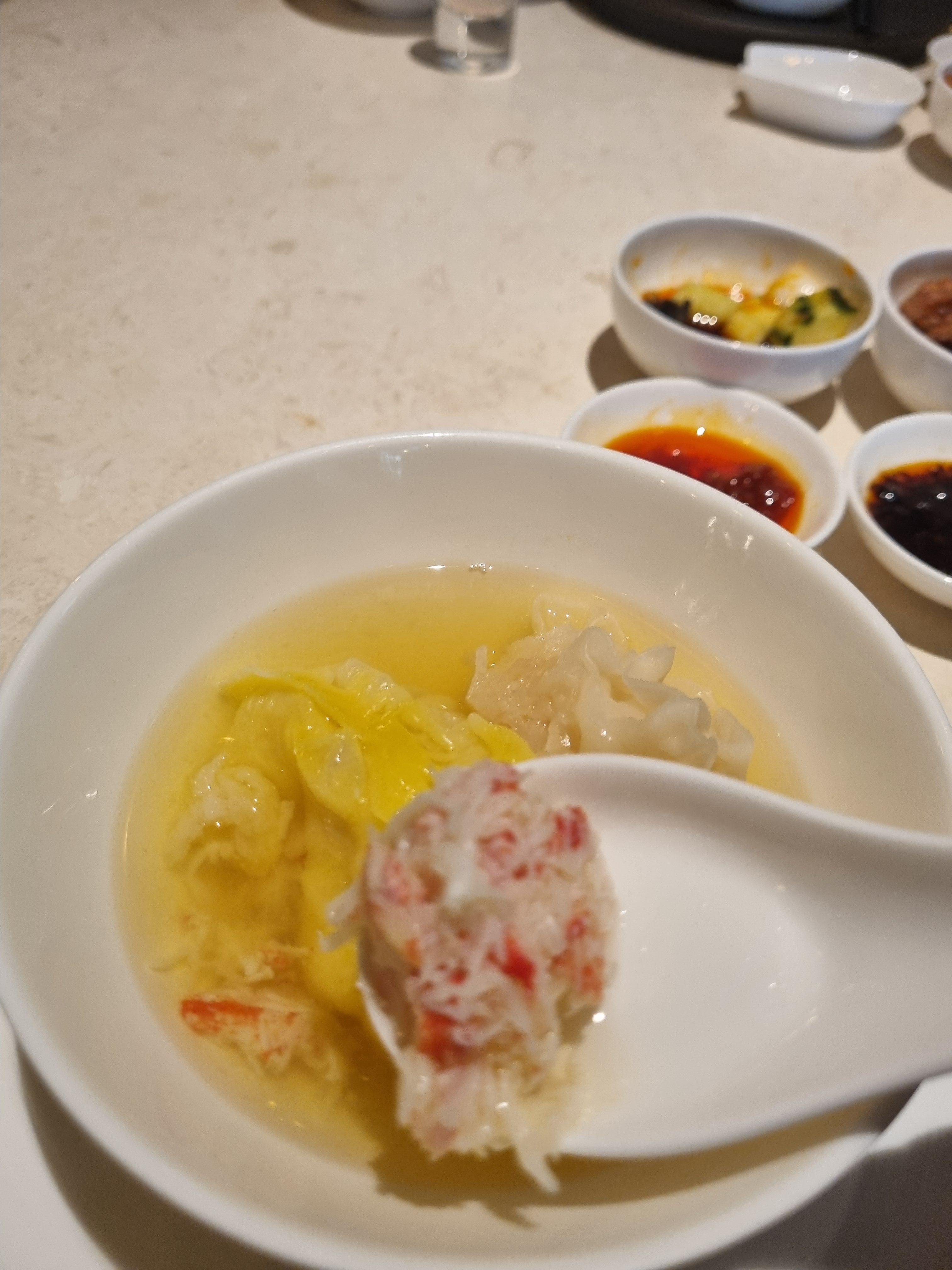 게살과 흰 목이버섯, 왕만두가 들어간 관탕교.