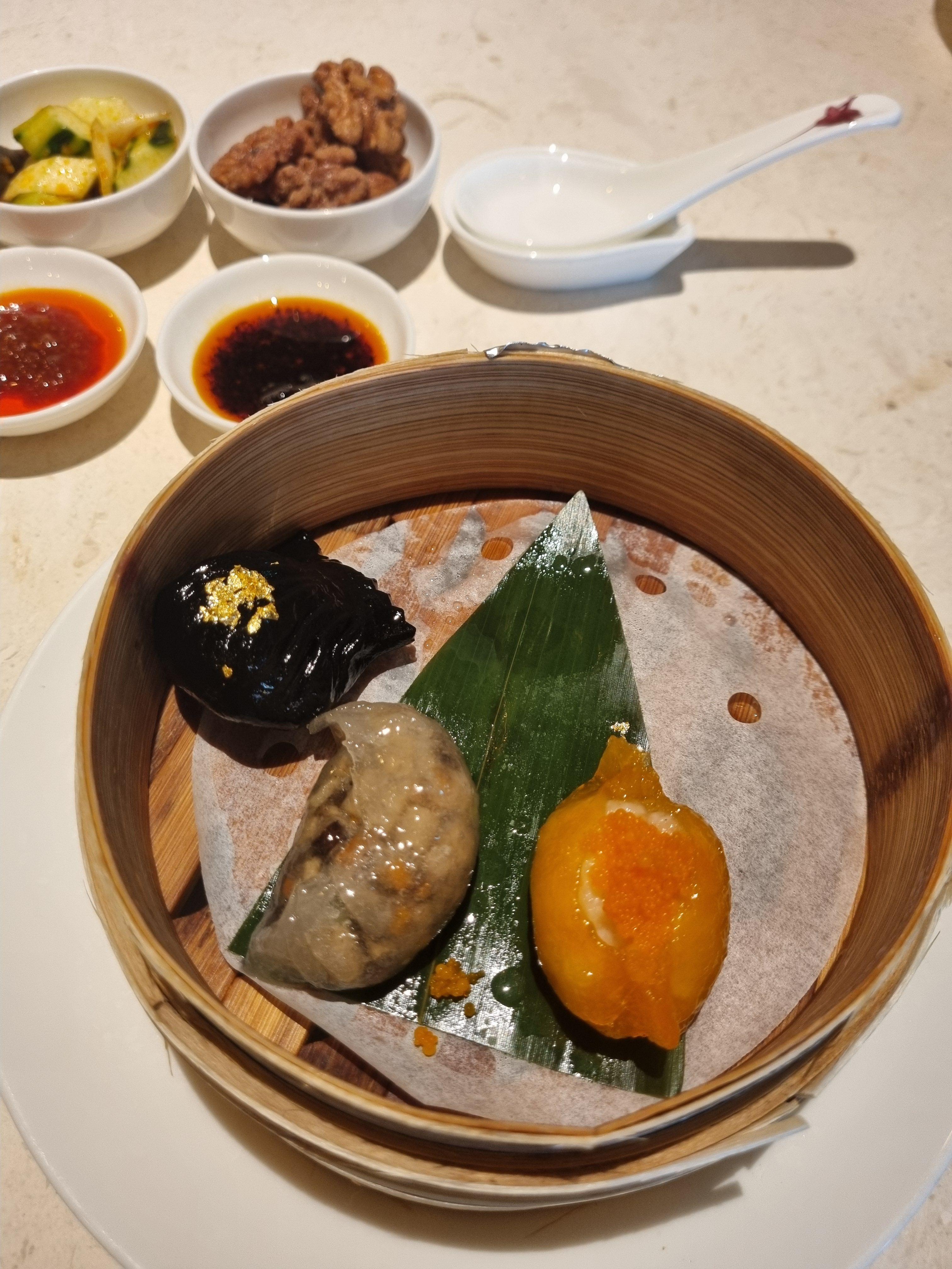 검정색 하가우 딤섬은 오징어 먹물피이고, 얇은피에 든건 버섯과 소고기였는데 너무 맛있었어요.