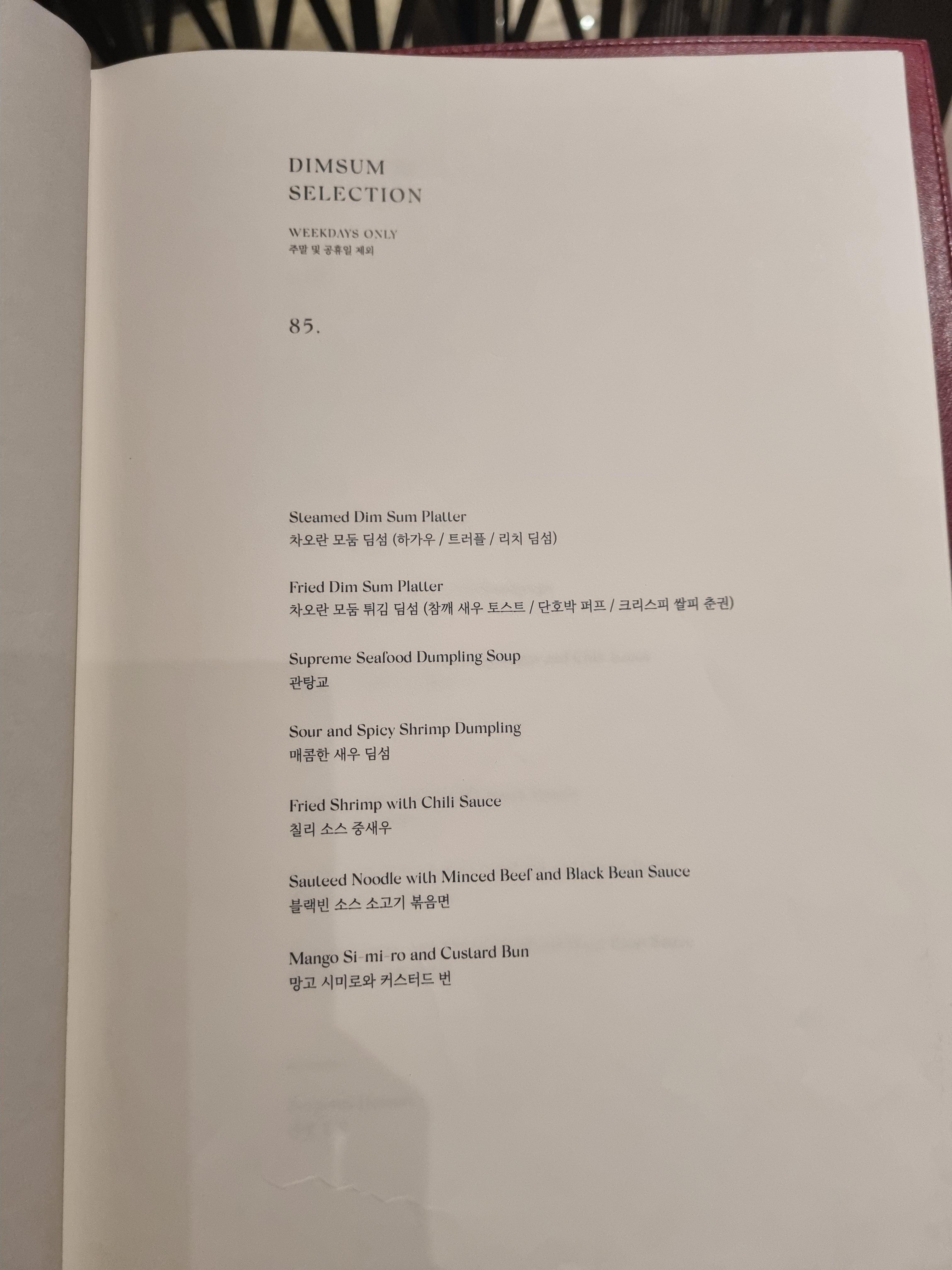 엄마와 저는 딤섬을 여러가지 먹어보고 싶어서 딤섬 셀렉션으로 주문했습니다.(인당 85,000원)