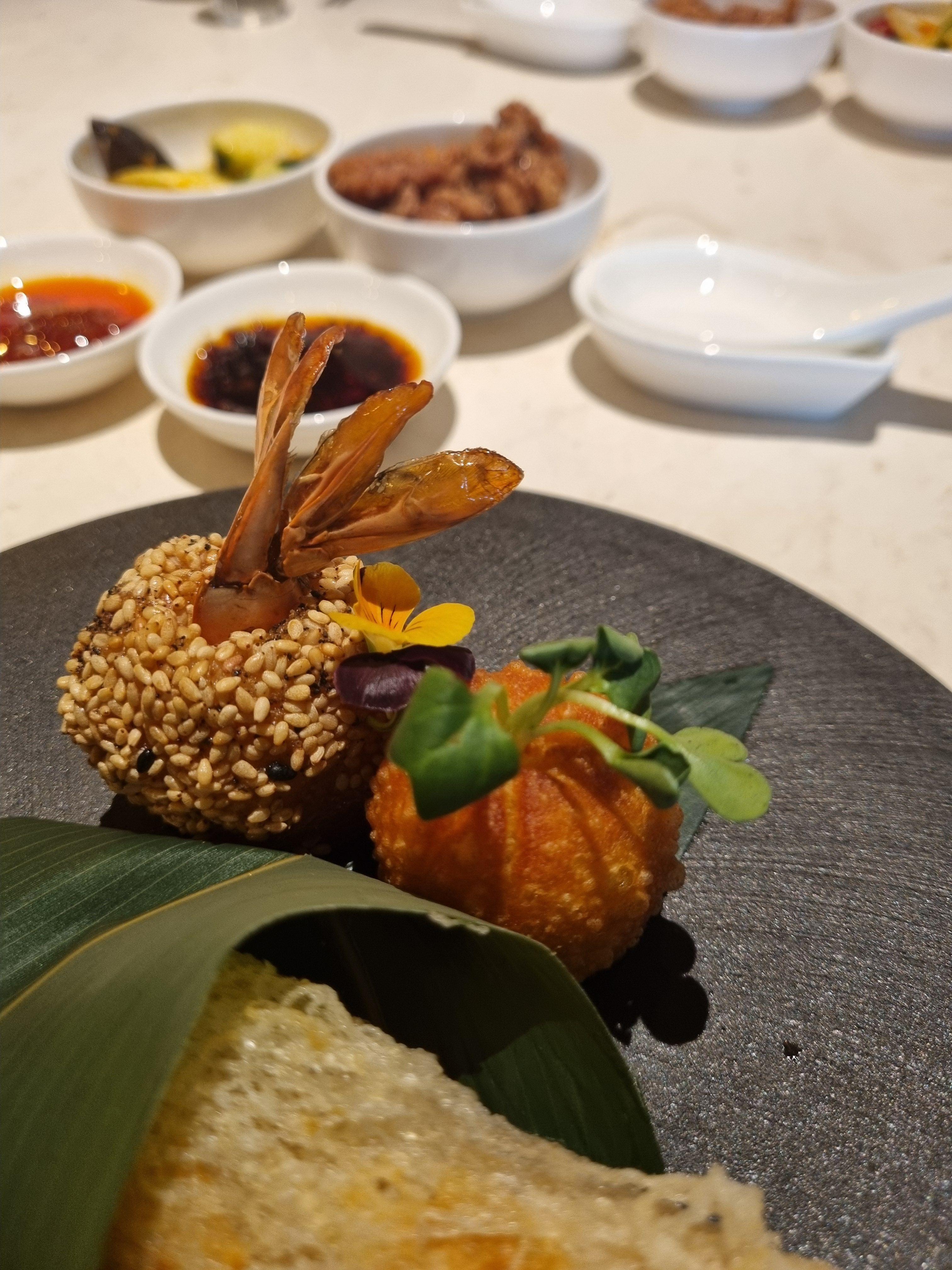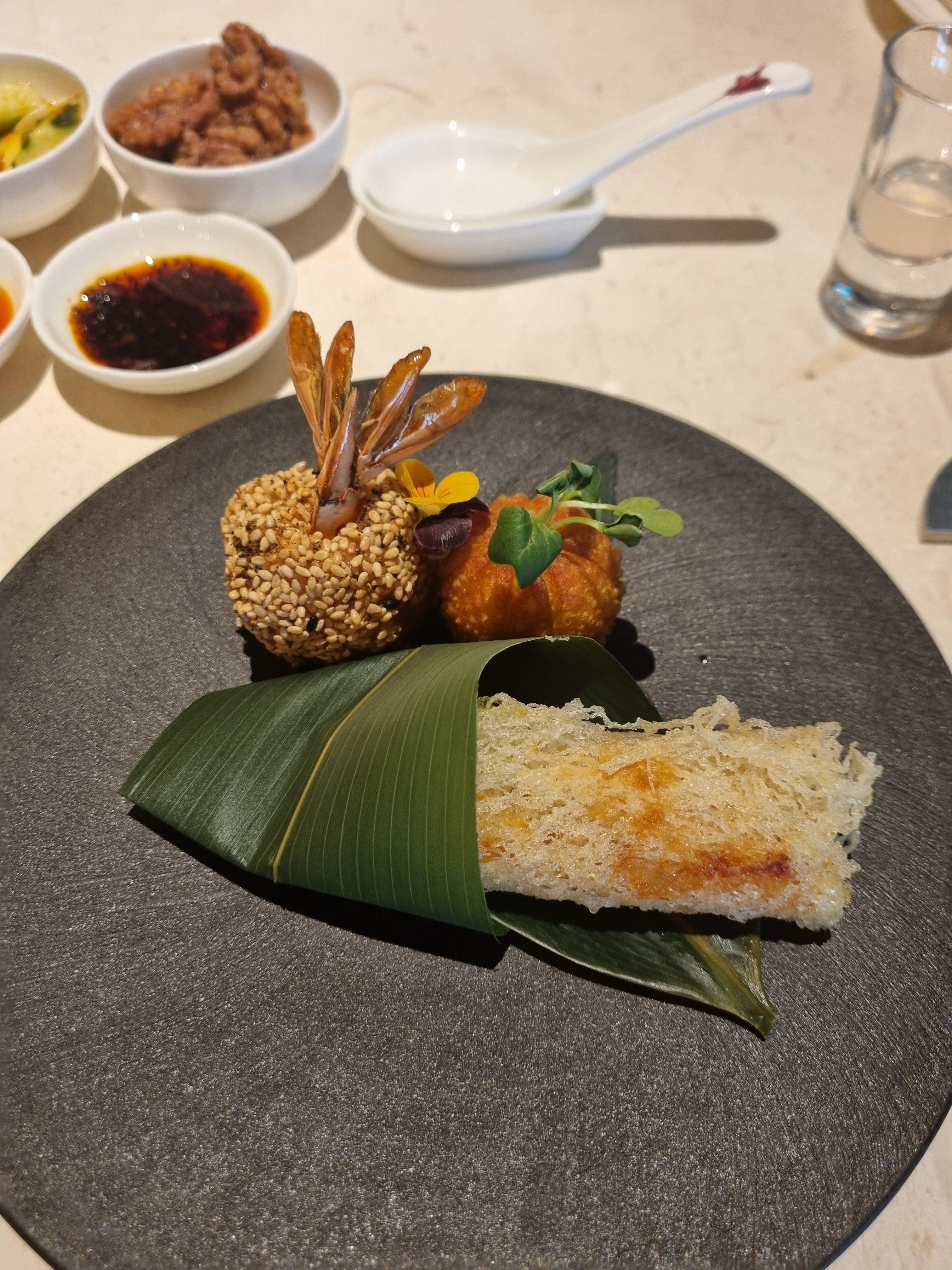 참깨새우 토스트는 멘보샤같은 느낌은데 새우가 탱글탱글 가득 차있었어요.