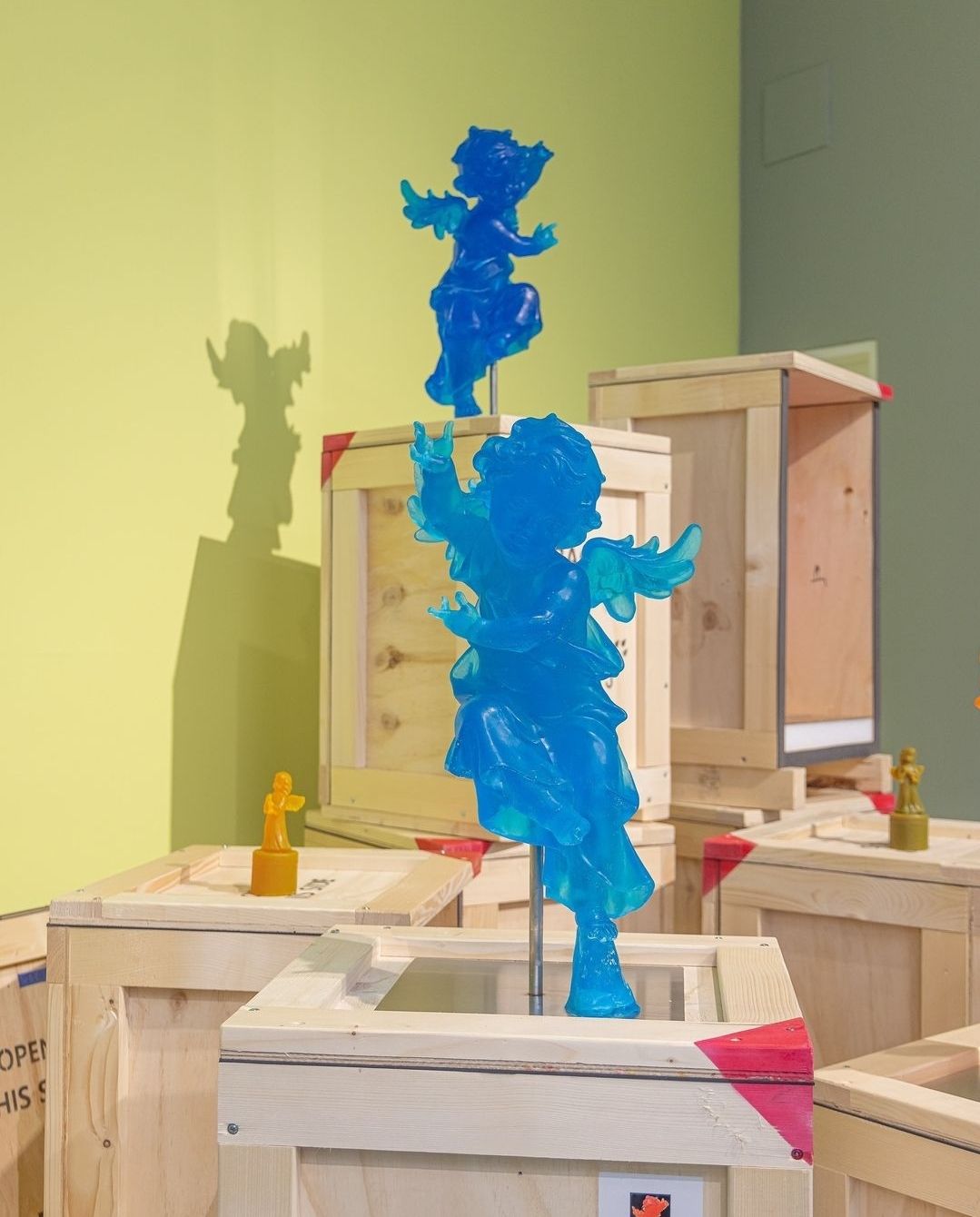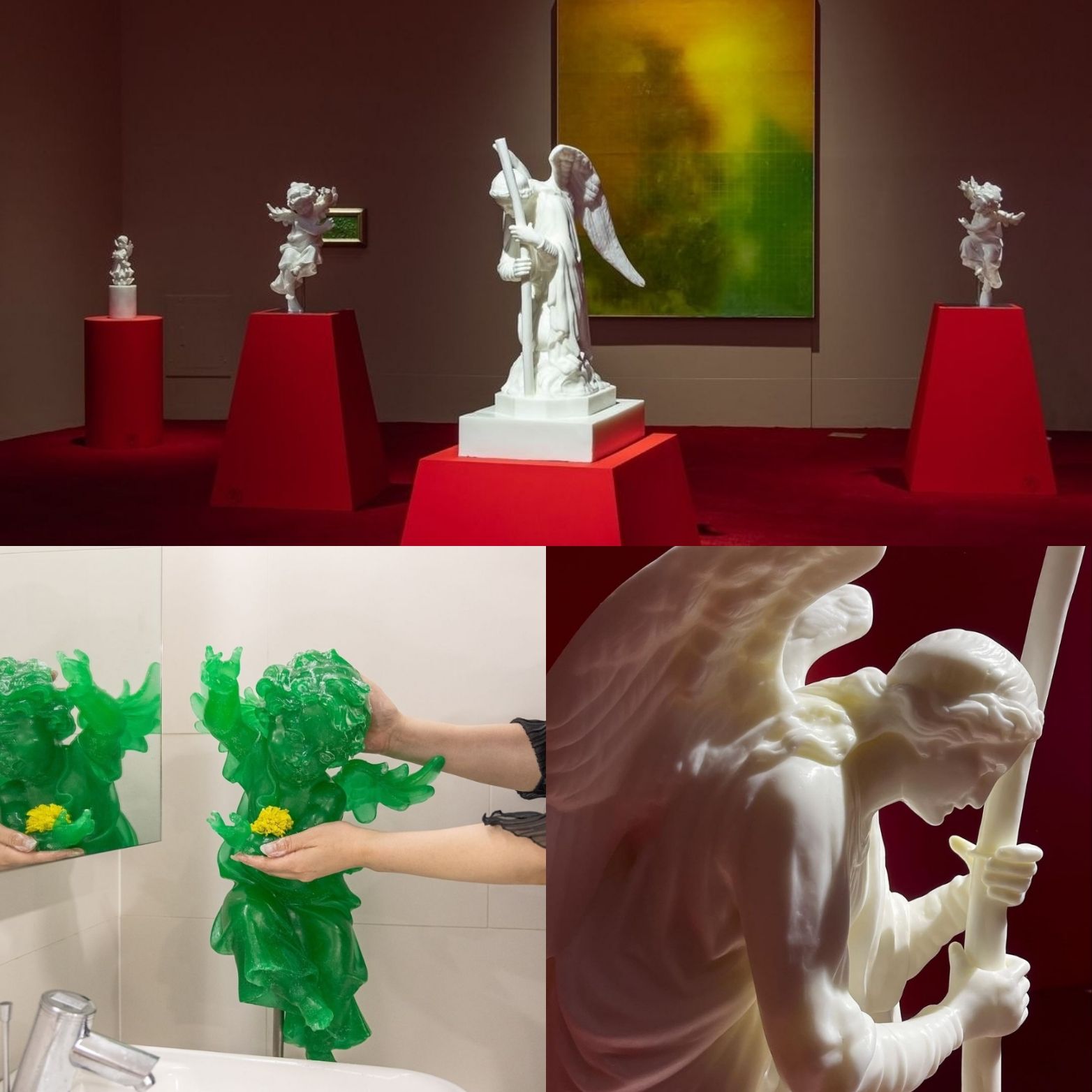 '천사'를 주제로 한 이번 <투명하고 향기나는 천사의 날개 빛깔처럼> 전시는 '엔젤'시리즈 조각과 끓여서 녹인 비누를 틀에 부어 섞어 나가며 굳혀 만든 페인팅 시리즈,