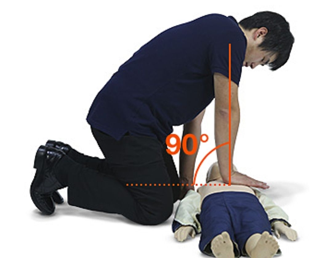 - 가슴을 압박할때 팔꿈치에 힘을 주고 절대 구부리지 않습니다.