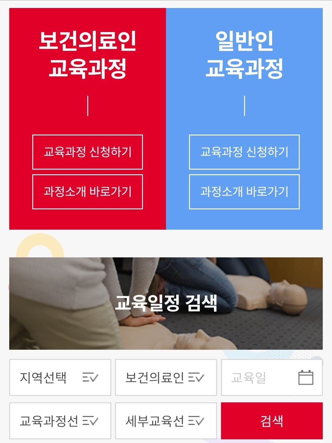 대한심폐소생술협회는 일반인을 대상으로 한 심폐소생술 교육과정을 진행하고 있는데, 국민 누구나 신청가능합니다.