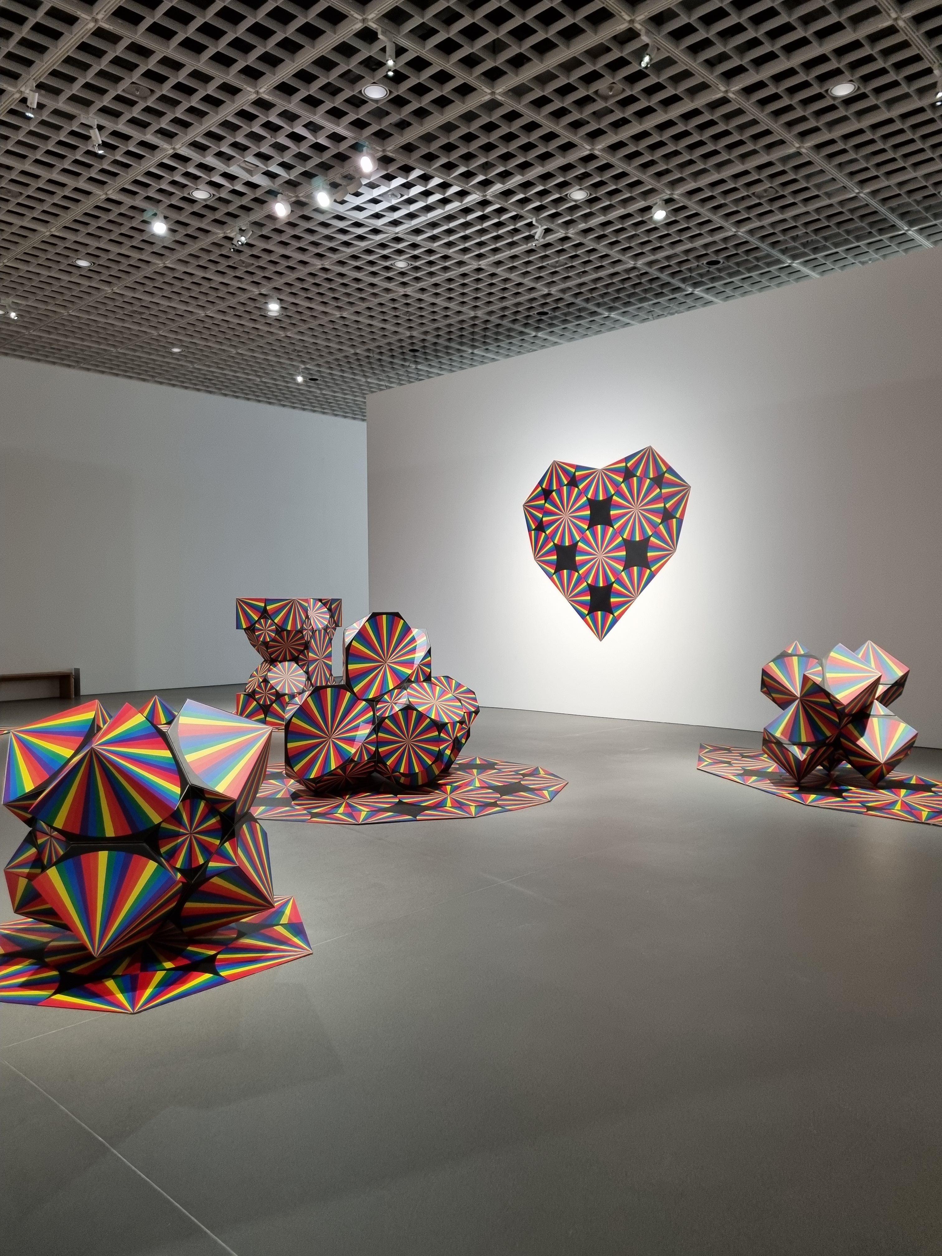 이번 전시는 미술관의 질서정연한 공간을 생동하는 공감각적 공간으로 탈바꿈하는 고민에서 출발했고, 미술관의 '화이트큐브'를 새로운 색상과 패턴으로 물들이는 작품들로 구성되었다고 합니다.