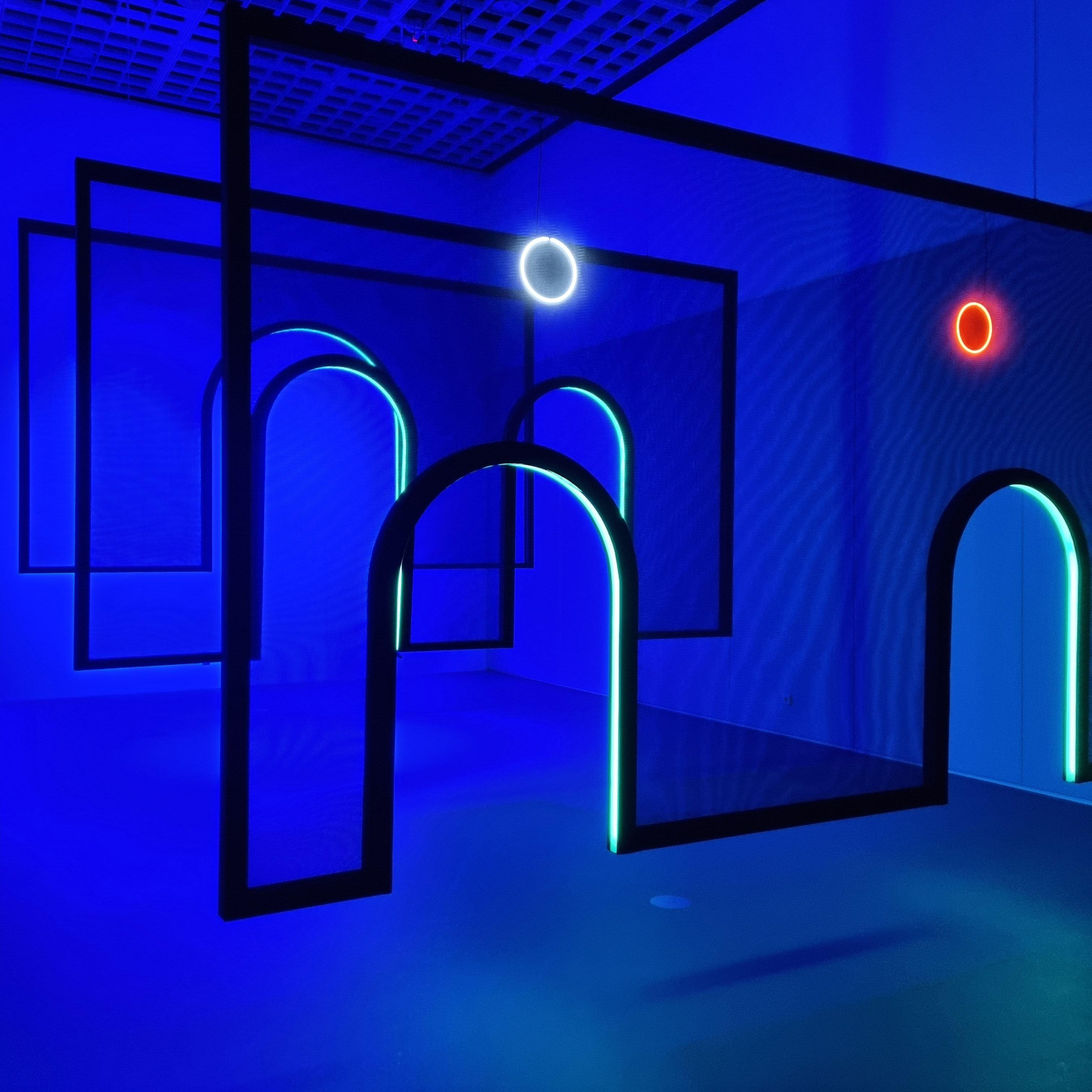 이번 전시는 미술관의 질서정연한 공간을 생동하는 공감각적 공간으로 탈바꿈하는 고민에서 출발했고, 미술관의 '화이트큐브'를 새로운 색상과 패턴으로 물들이는 작품들로 구성되었다고 합니다.