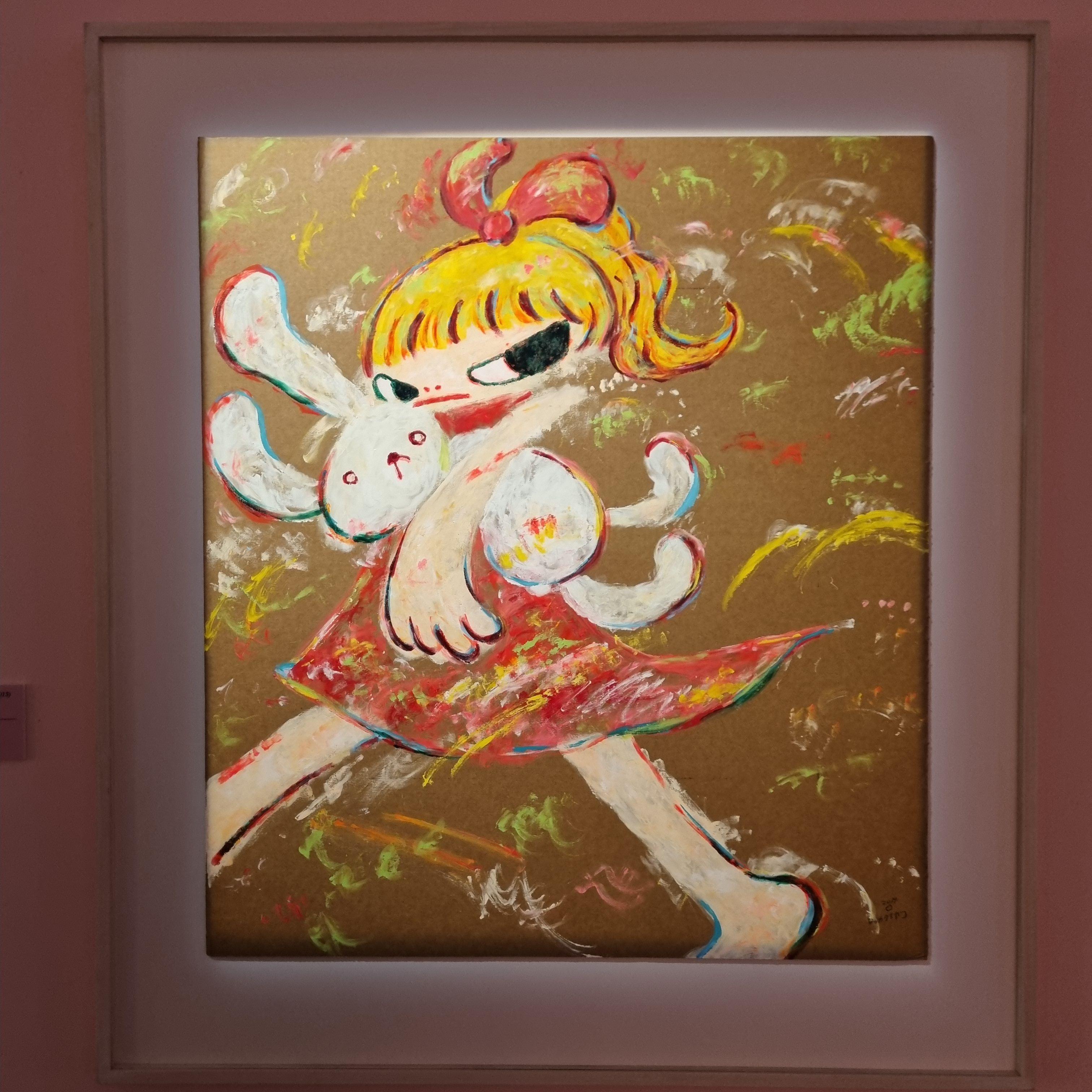 이 작품의 제목은 '고스트 래빗'으로 어딘가 화가 나보이는 소녀는 분홍색, 파란색 귀를 가진 두 마리의 토끼와 함께 어딘가로 향하는 듯, 발걸음을 내딛고 있습니다.