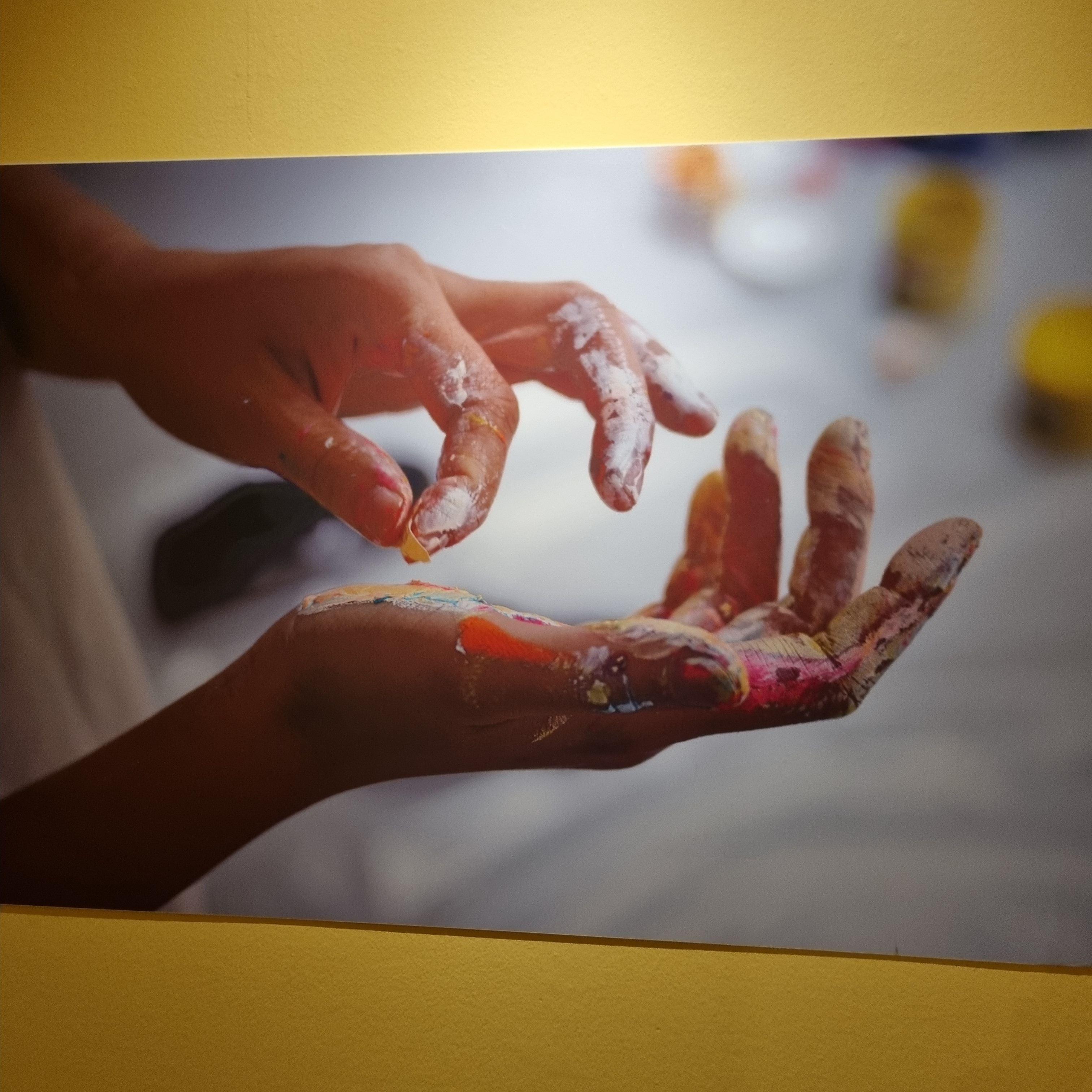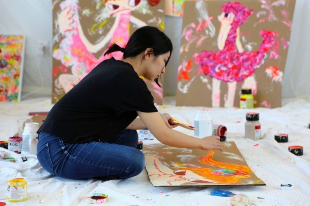 손에 직접 물감을 묻혀 다양한 화면에 자신의 세계를 표현하는 핑거페인팅 작업으로 그녀만의 독특한 화풍을 만들어내는 화가입니다.