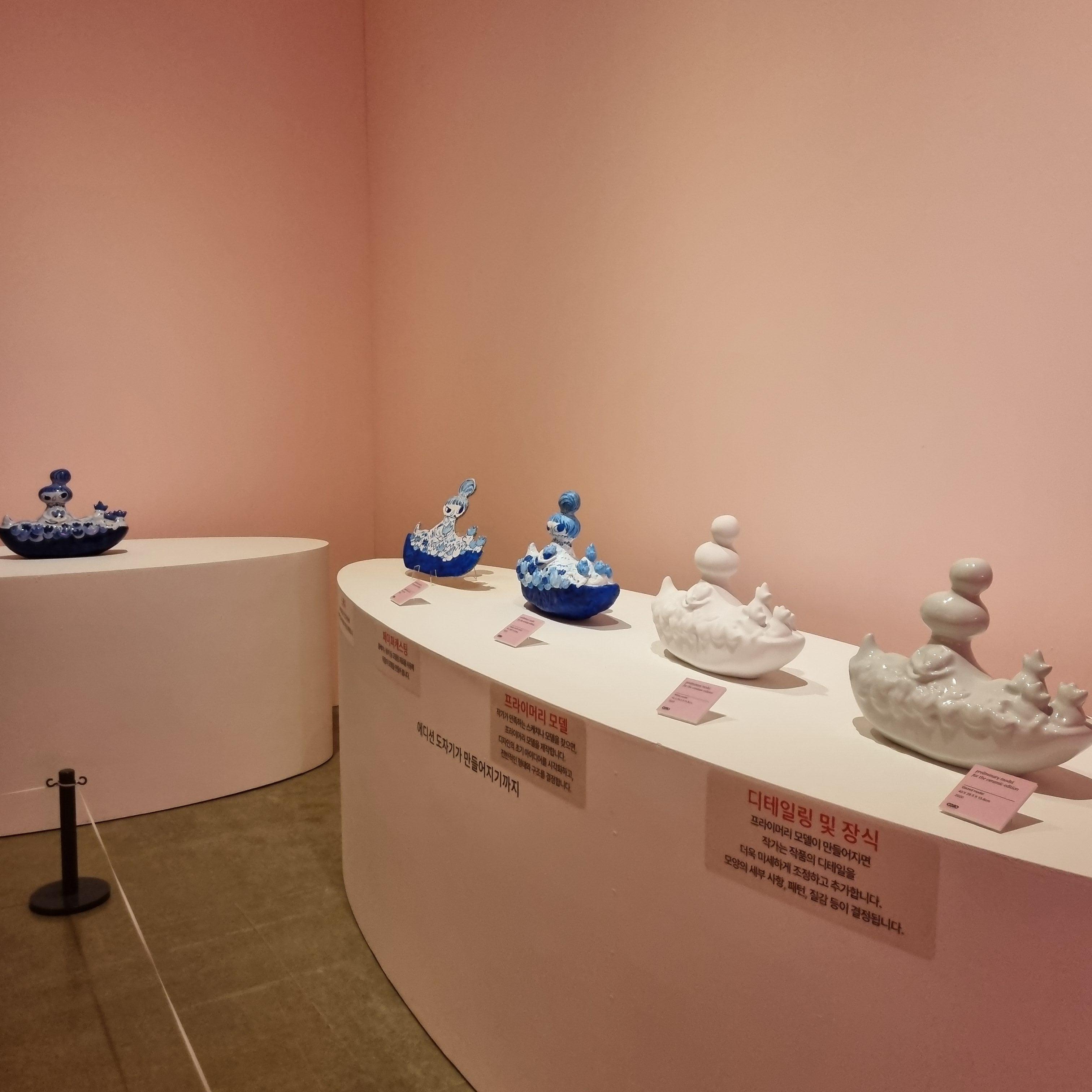 도자기 작품을 만들때의 단계를 알기 쉽게 재현해 놓은 작품들.