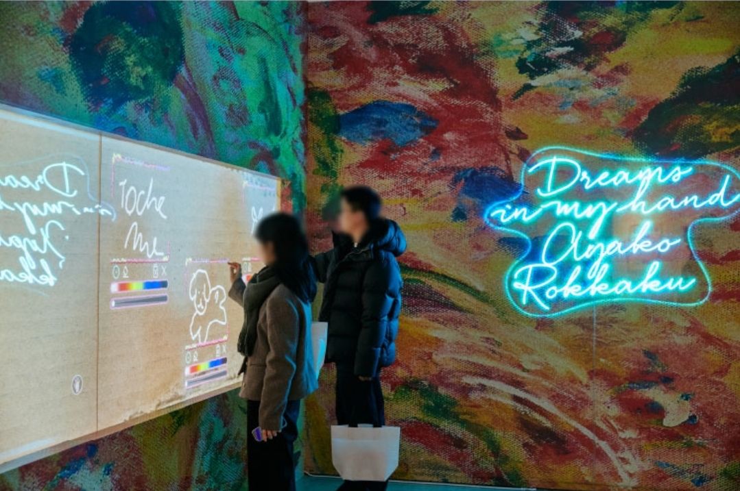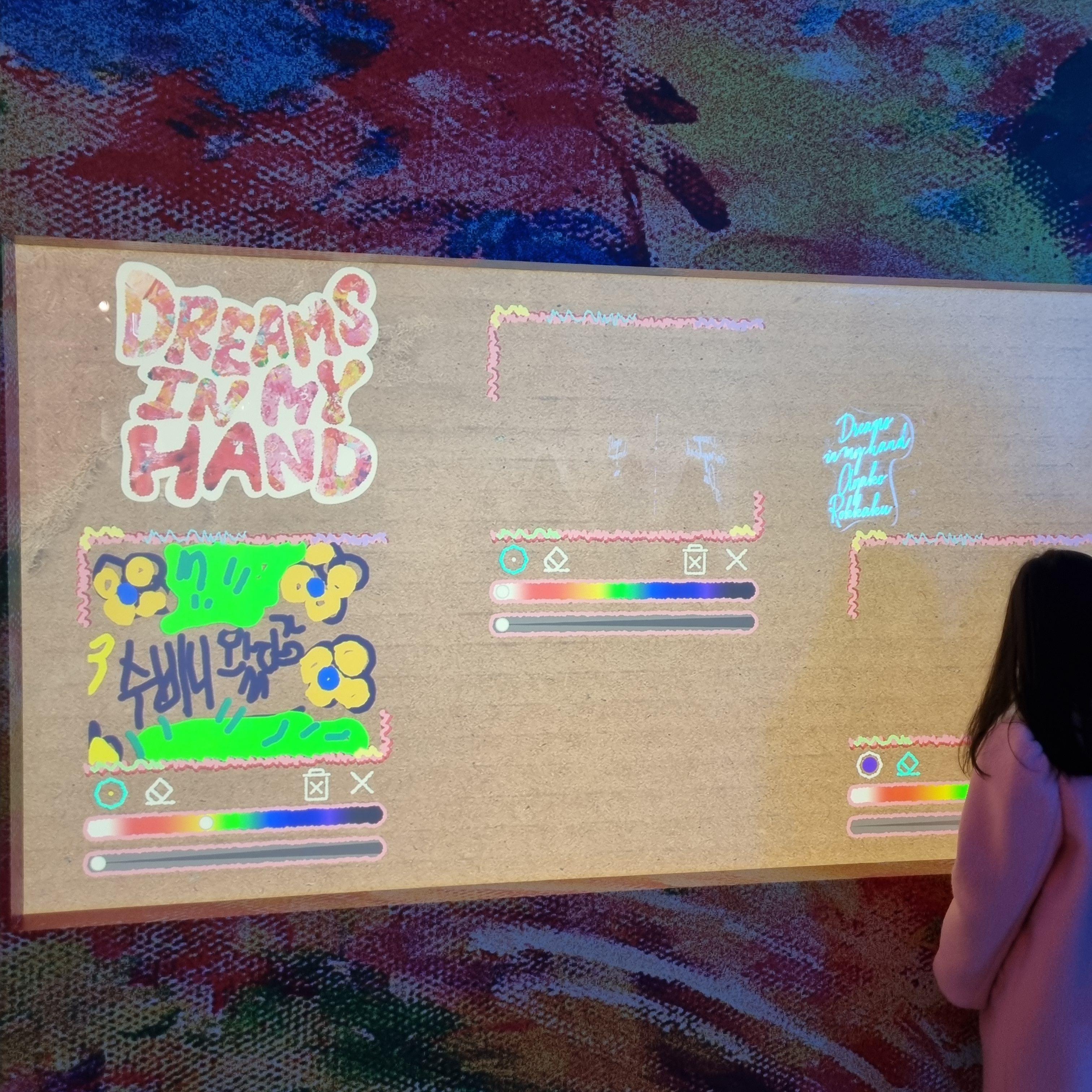 전시장 한쪽에 디지털 캔버스에 관람자들이 직접 손으로 그림을 그릴 수 있게 만들어놓은 공간도 있었는데 아이들이 하면 정말 재밌어 할 것 같습니다.