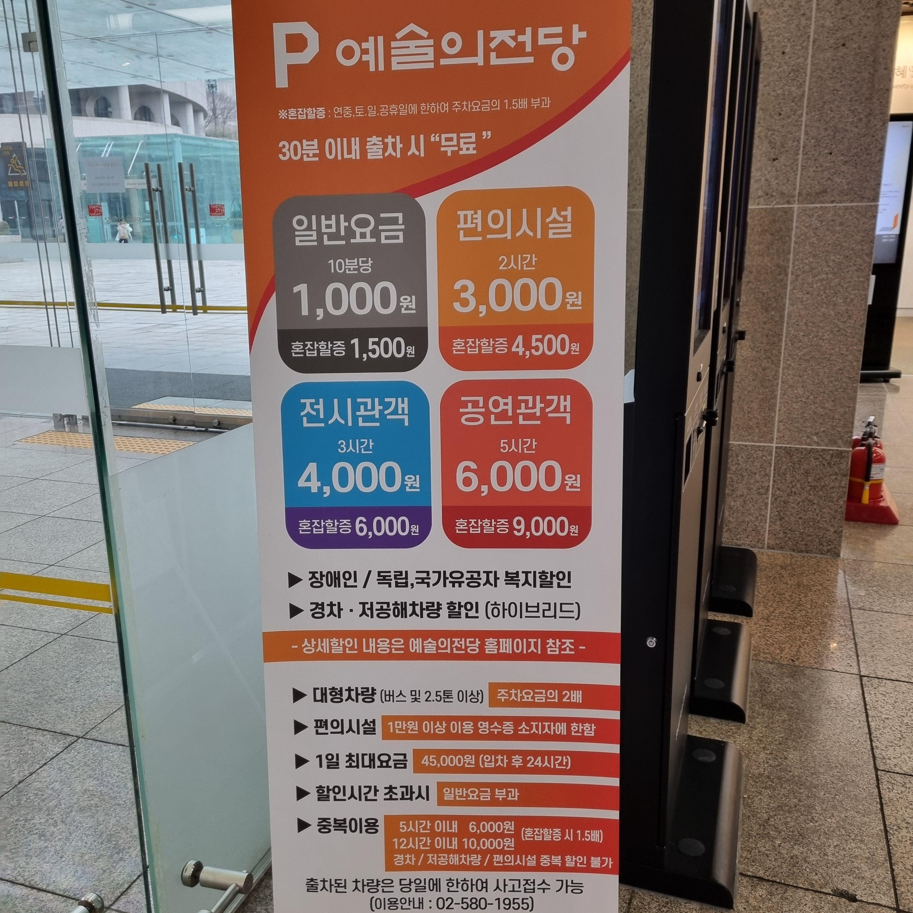 예술의 전당 주차는 10분당 1,000원이고(30분이내 출차시 무료)