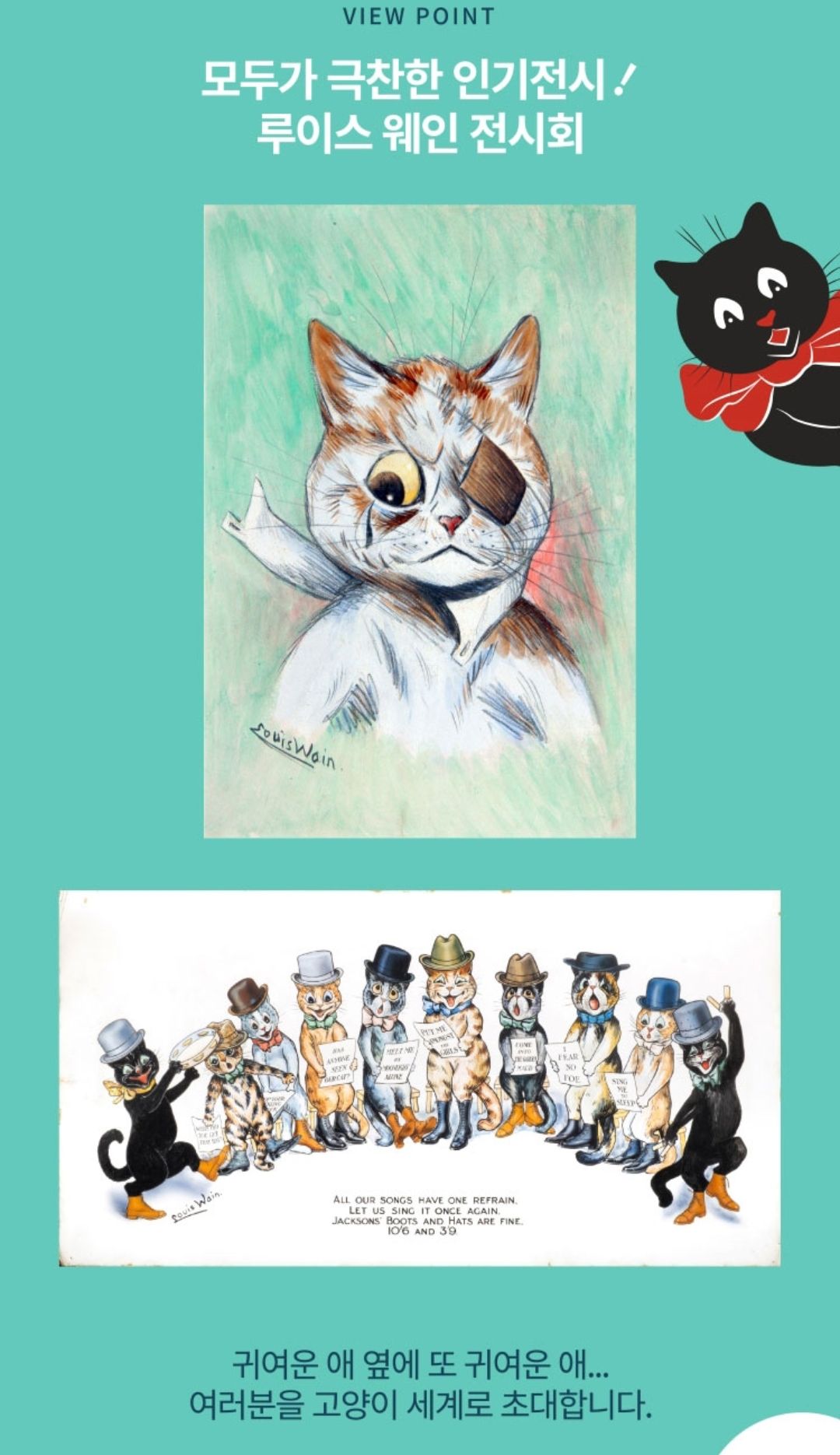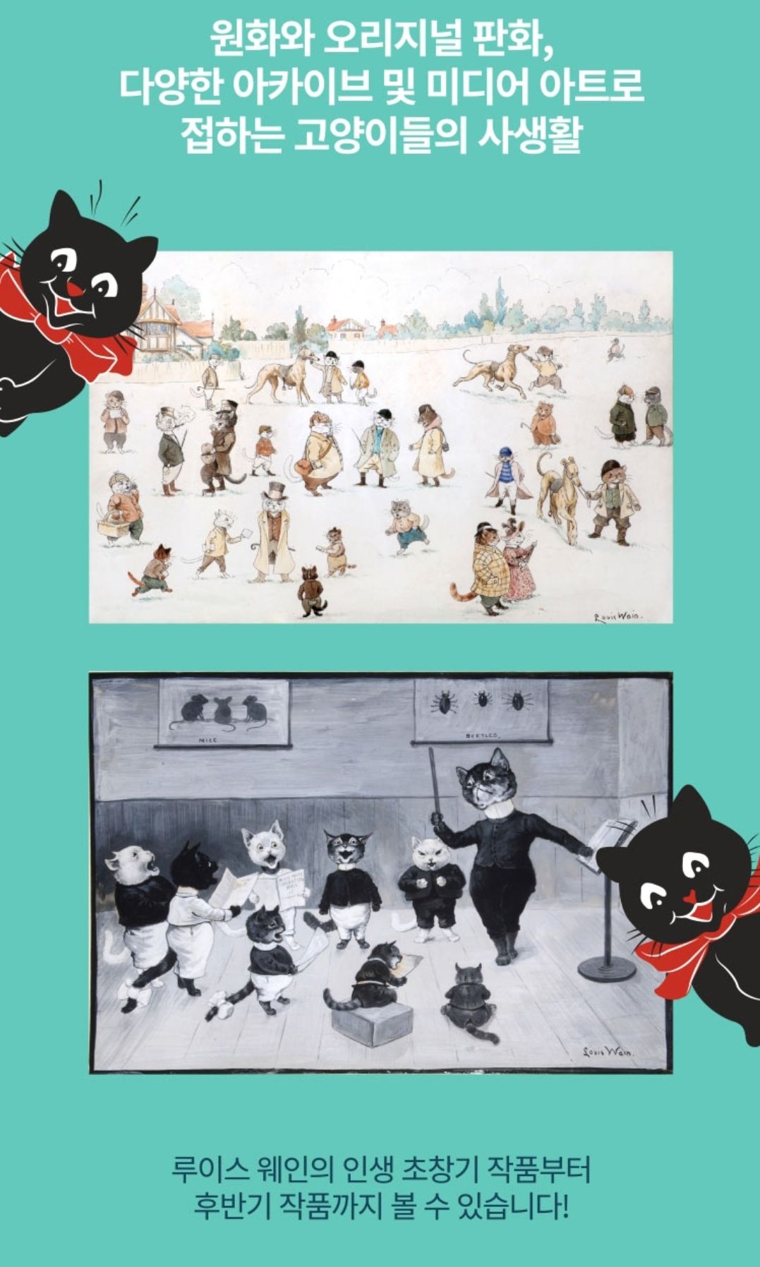 <루이스 웨인전 : 고양이를 그린 화가> 전은 영국의 작가 루이스 웨인의 원화와 판화, 미디어아트를 동시에 만나볼 수 있는 전시입니다.