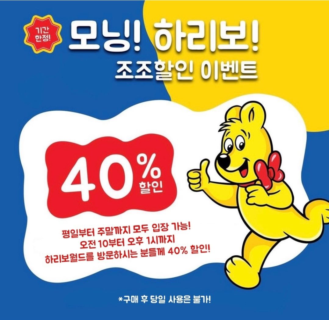 오전 10시부터 오후 1시까지 관람티켓 40% 할인진행중