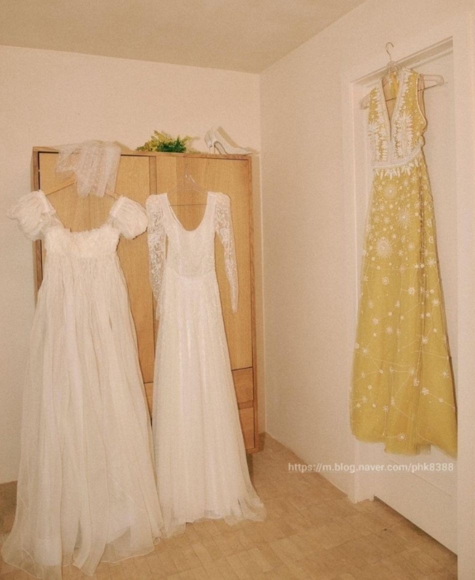 공효진씨가 자신의 결혼식때 드레스를 3벌 입었었는데 그날 이 노란드레스도 있었어요.