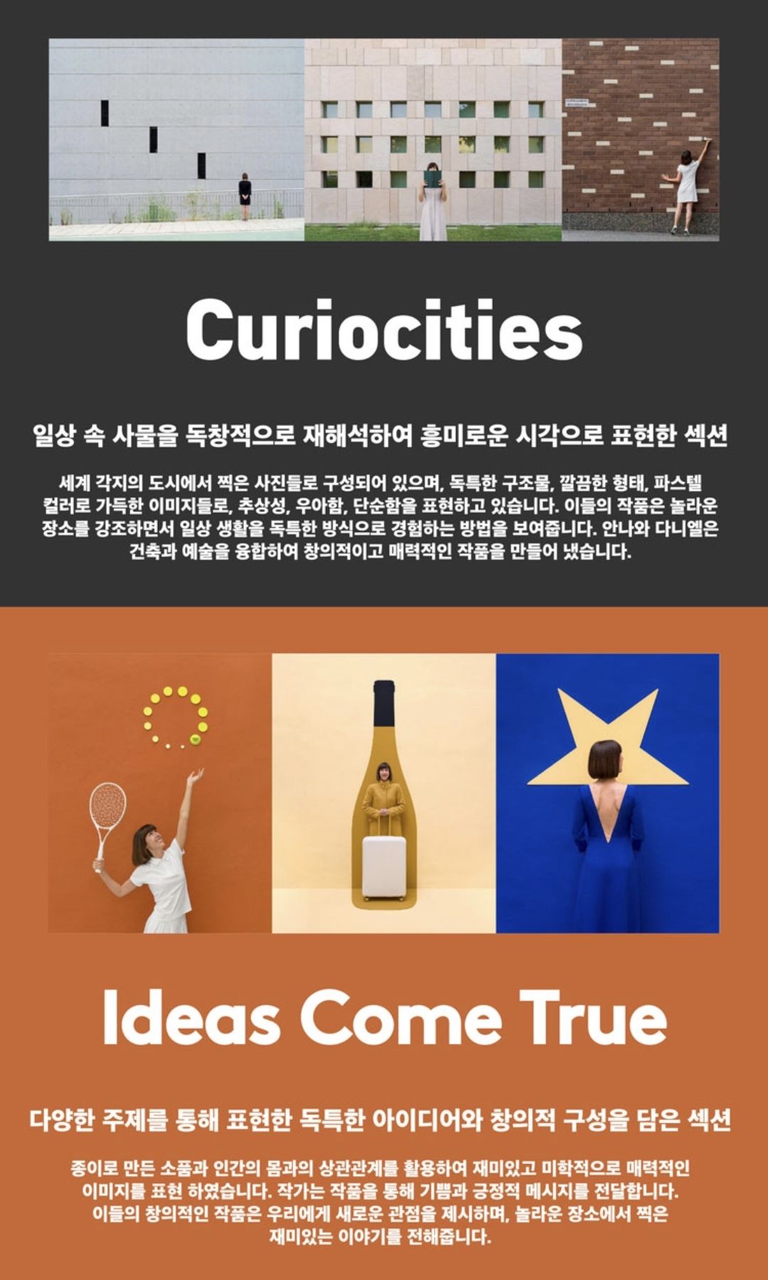 종이로 만든 소품과 인간의 몸과의 상관관계를 활용하여 재미있고 미학적으로 매력적인 이미지를 표현한 섹션은 우리에게 새로운 관점을 제시하고 놀라운 장소에서 찍은 재미있는 이야기를 전해줍니다.