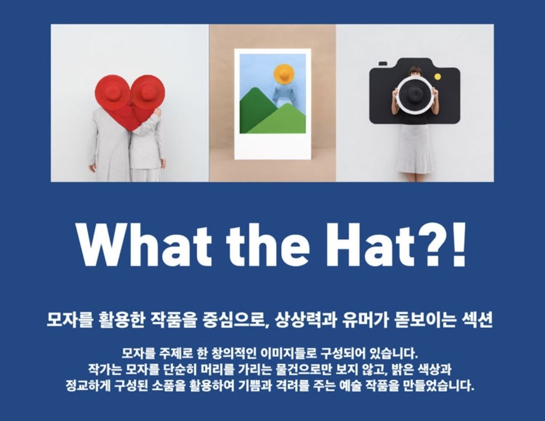 모자를 주제로 한 창의적인 이미지들로 구성된 상상력과 유머가 돋보이는 섹션도 있습니다.
