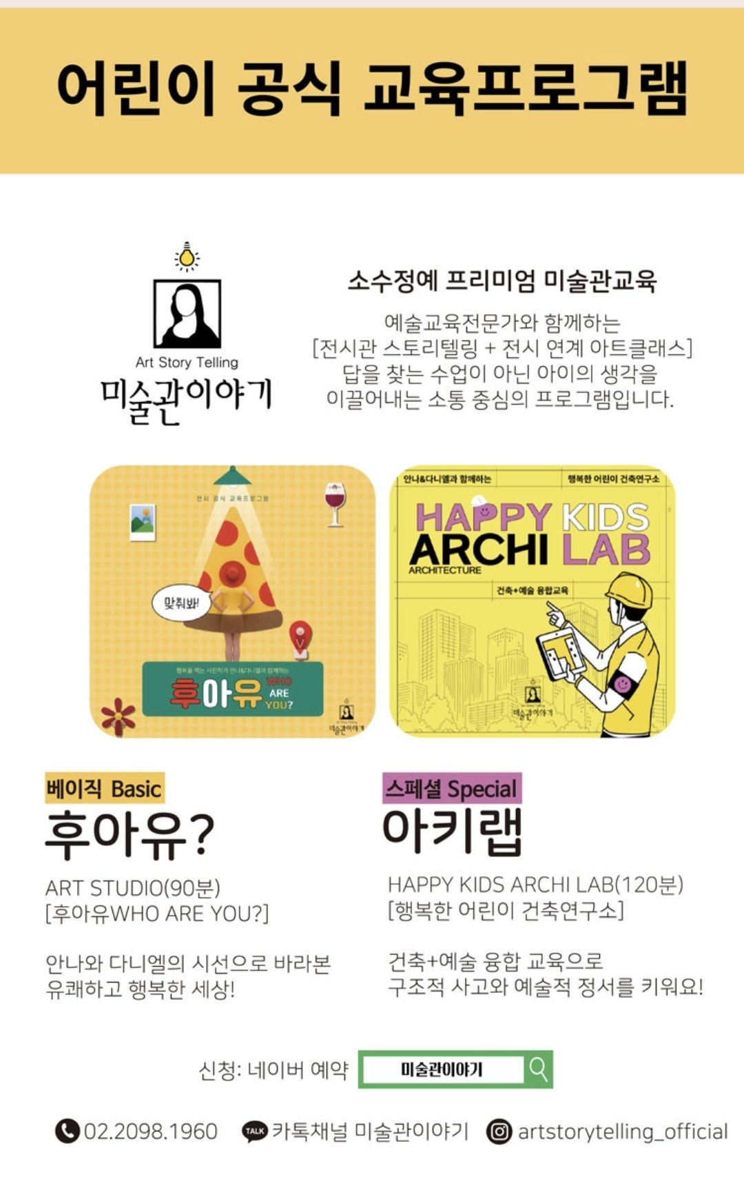 프로그램은 베이직과 스페셜이 있구요, 미술관이야기 공식 홈페이지나 네이버 예약으로 가능합니다.