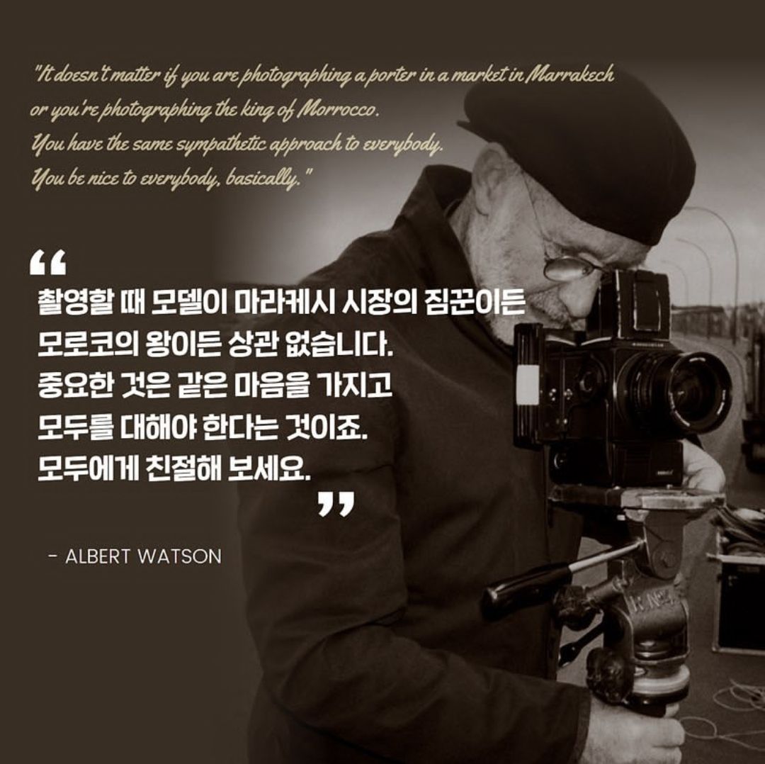 알버트 왓슨은 알프레드 히치콕, 데이비드 보위, 스티브 잡스 등 시대의 아이콘들과 작업하고 100회 이상 보그 표지를 찍었으며 80세를 넘긴 지금도 뉴욕에서 현역으로 활동하며 소통하고 있습니다.