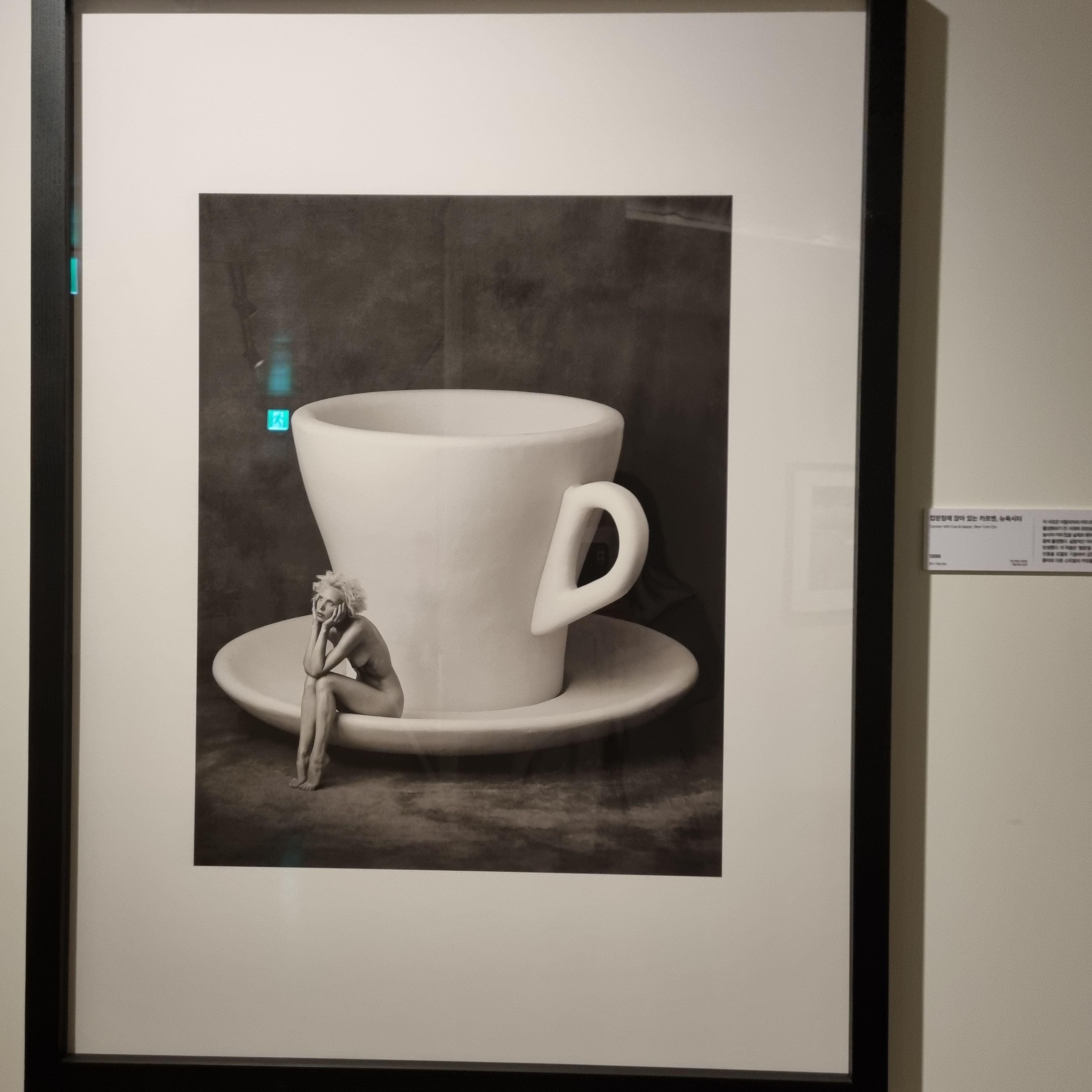 꼭 합성같아 보이는 이 사진은 포토샵이 활성화되기전 초현실주의 컨셉을 실재화하기 위해 15피트 높이의 커피 컵을 실제로 제작하고, 모델을 거대한 커피 컵과 컵 받침, 스푼, 각설탕과 함께 촬영했습니다.