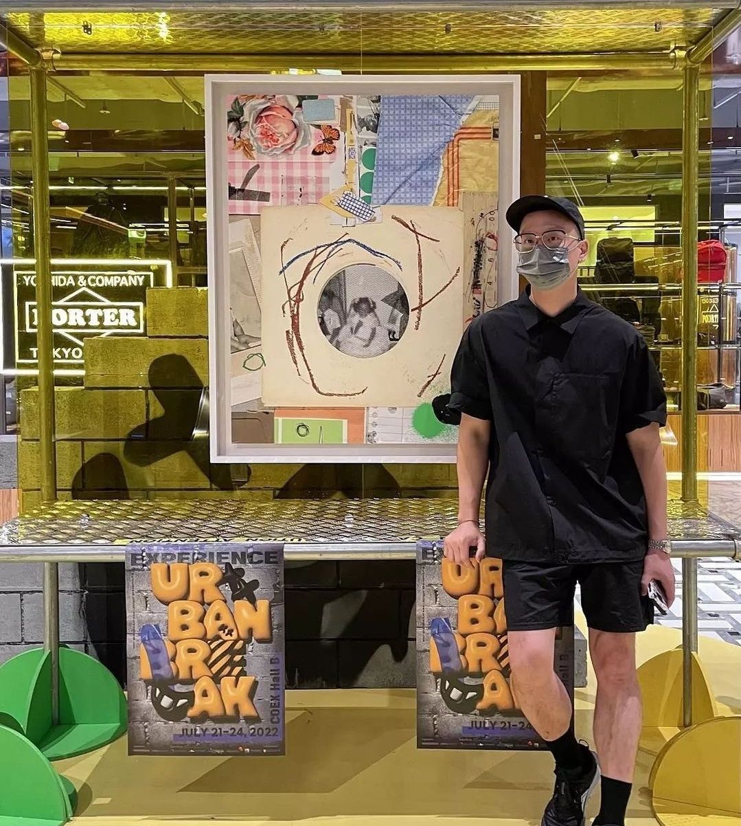 어반브레이크 2022에 출품하는 자신의 작품앞에서 사진찍은 나얼.  유나얼의 작품은(흑인을 주로 모델로 하고 콜라주작업을 많이 하는 듯 해요) 화가들에게도 인정받고 여러번 개인전을 열만큼 그의 화가로서의 입지는 단단해 보입니다.