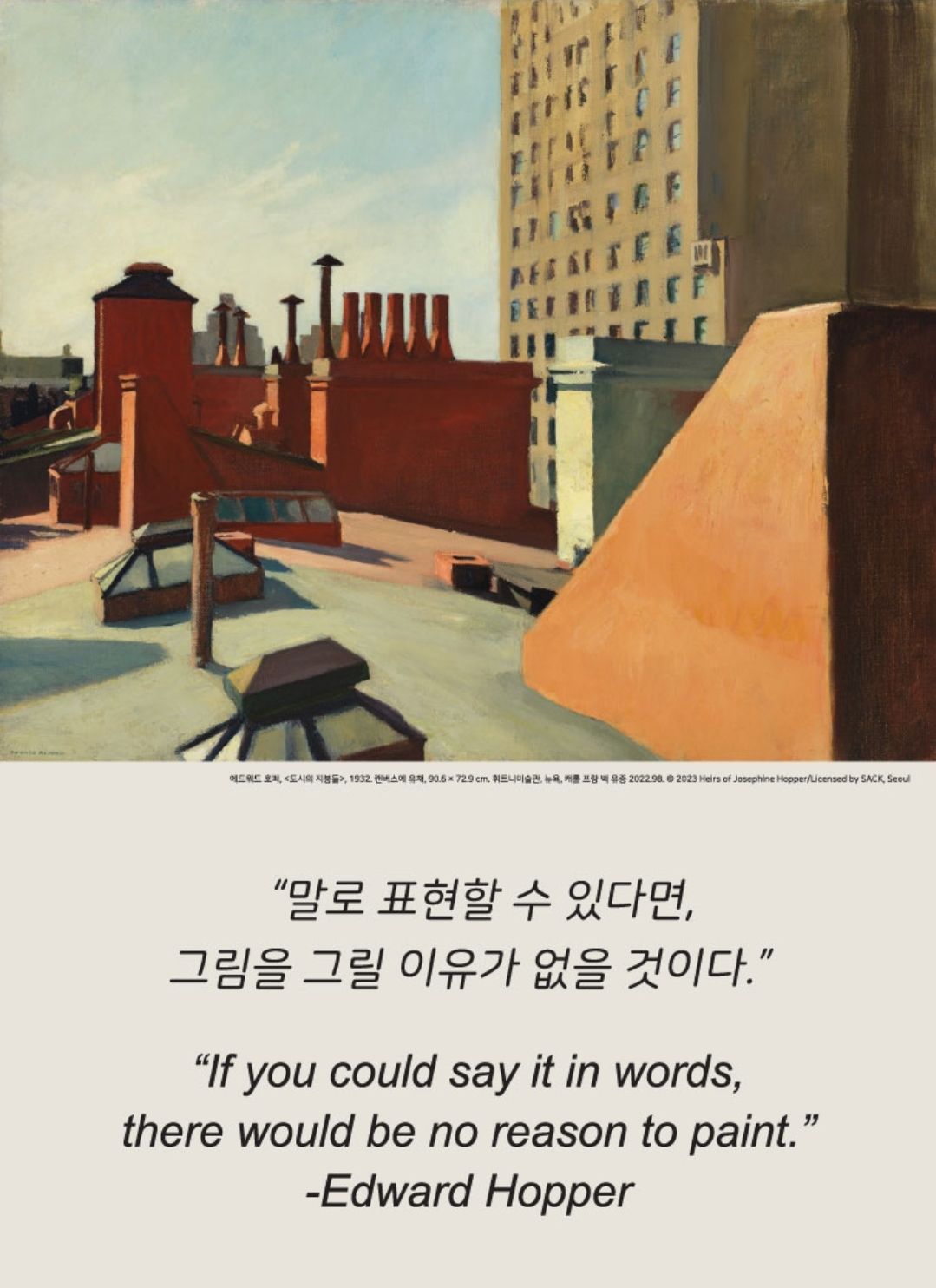 20세기 미국 현대미술사를 대표하는 작가 에드워드 호퍼의 국내 대규모 첫 개인전이 서울시립미술관 서소문본관에서 4월 20일부터 시작됩니다.