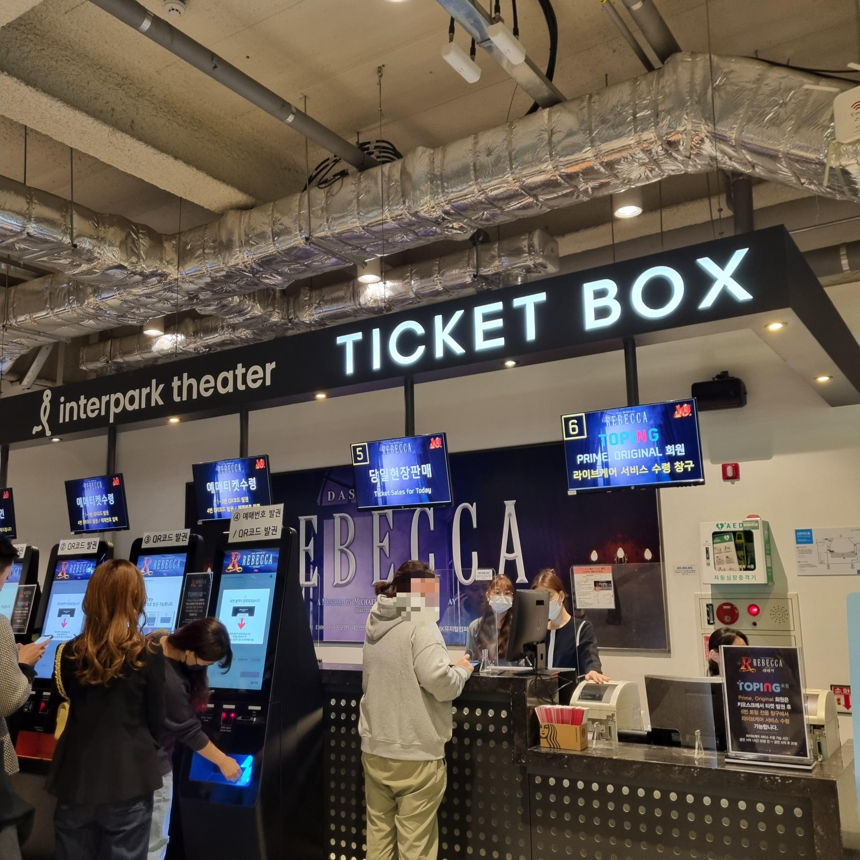 블루스퀘어 신한카드홀은 여러 층으로 나눠져 있는데, 티켓박스가 있는 층으로 가서 키오스크로 티켓을 수령합니다.