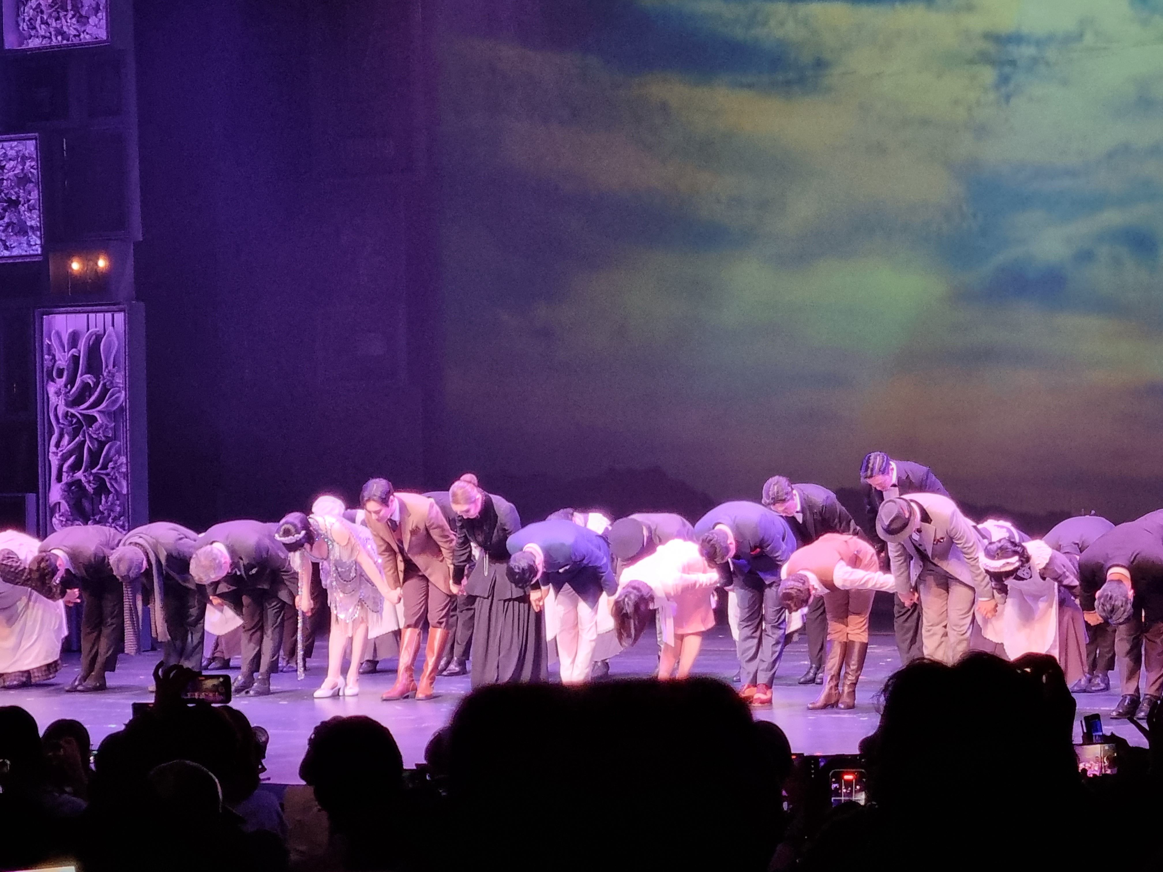 공연이 끝나고 배우들이 나와서 인사를 합니다.