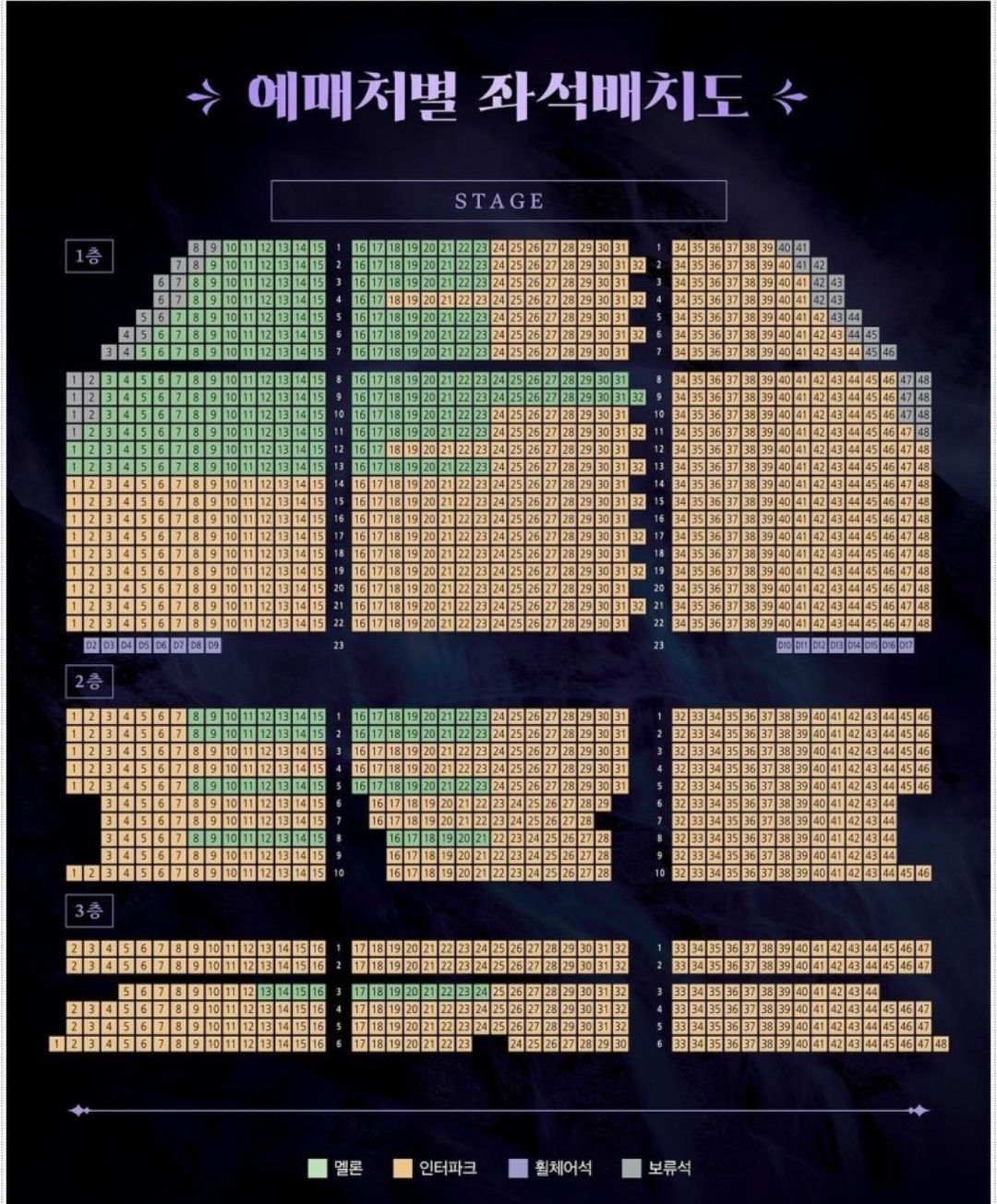 레베카 예매처별 좌석배치도입니다.