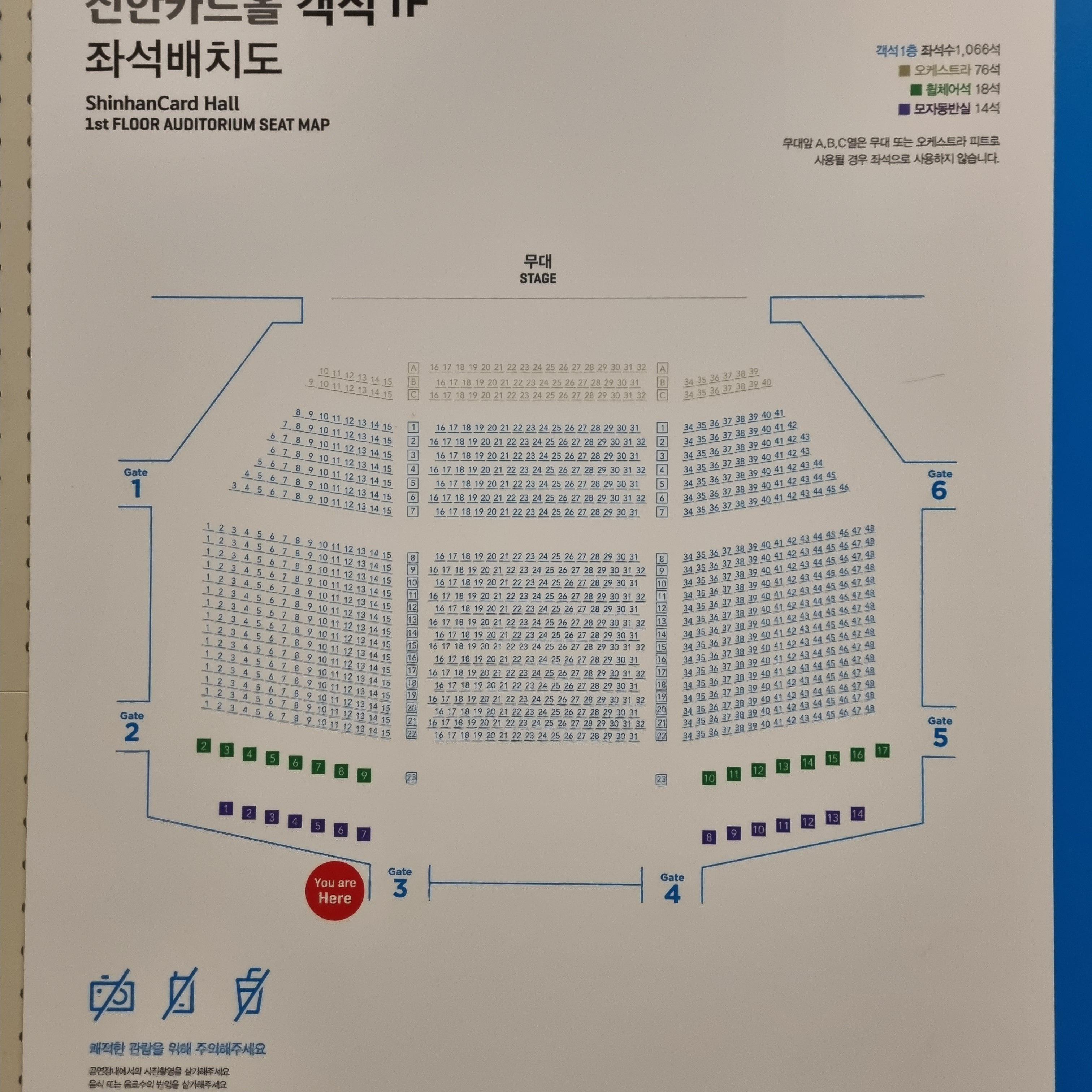 신한카드홀 객석 1층의 좌석배치도입니다.