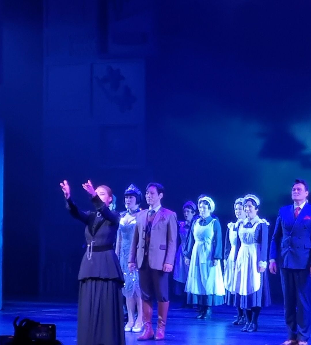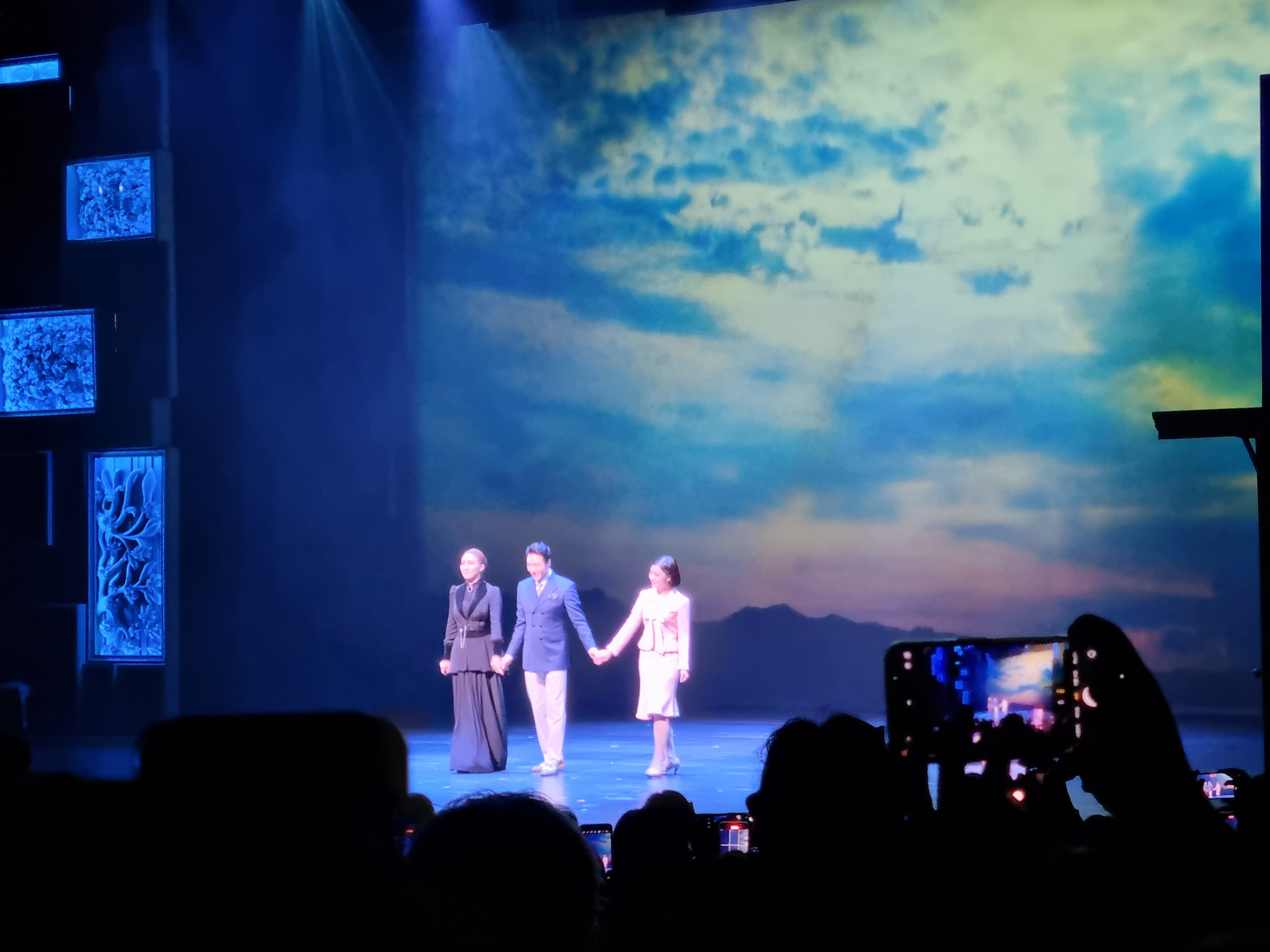 공연이 끝나고 배우들이 나와서 인사를 합니다.