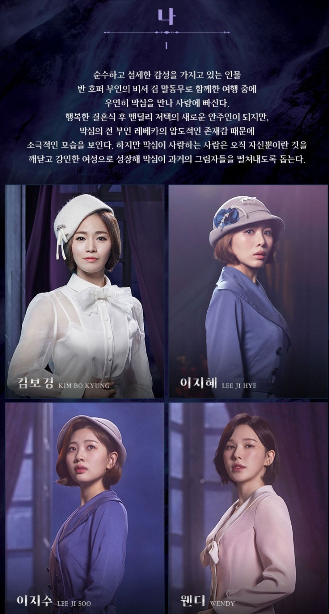 막심 드 윈터 역에 에녹, 댄버스 부인 역에 옥주현, 나 역에 이지수 입니다.