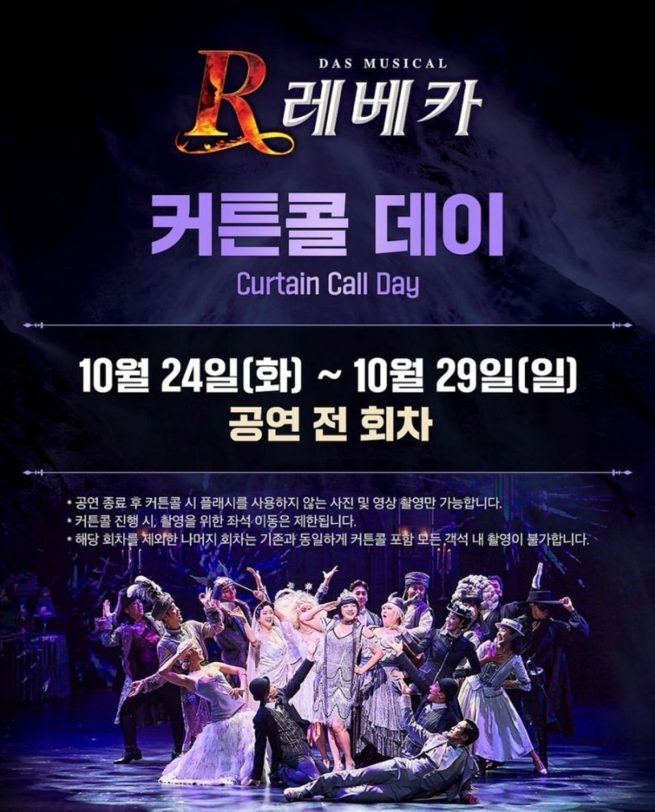 레베카는 모든 공연시 커튼콜도 촬영이 되지 않기 때문에 커튼콜데이에 공연을 본다는 건 너무 좋은 기회였습니다.