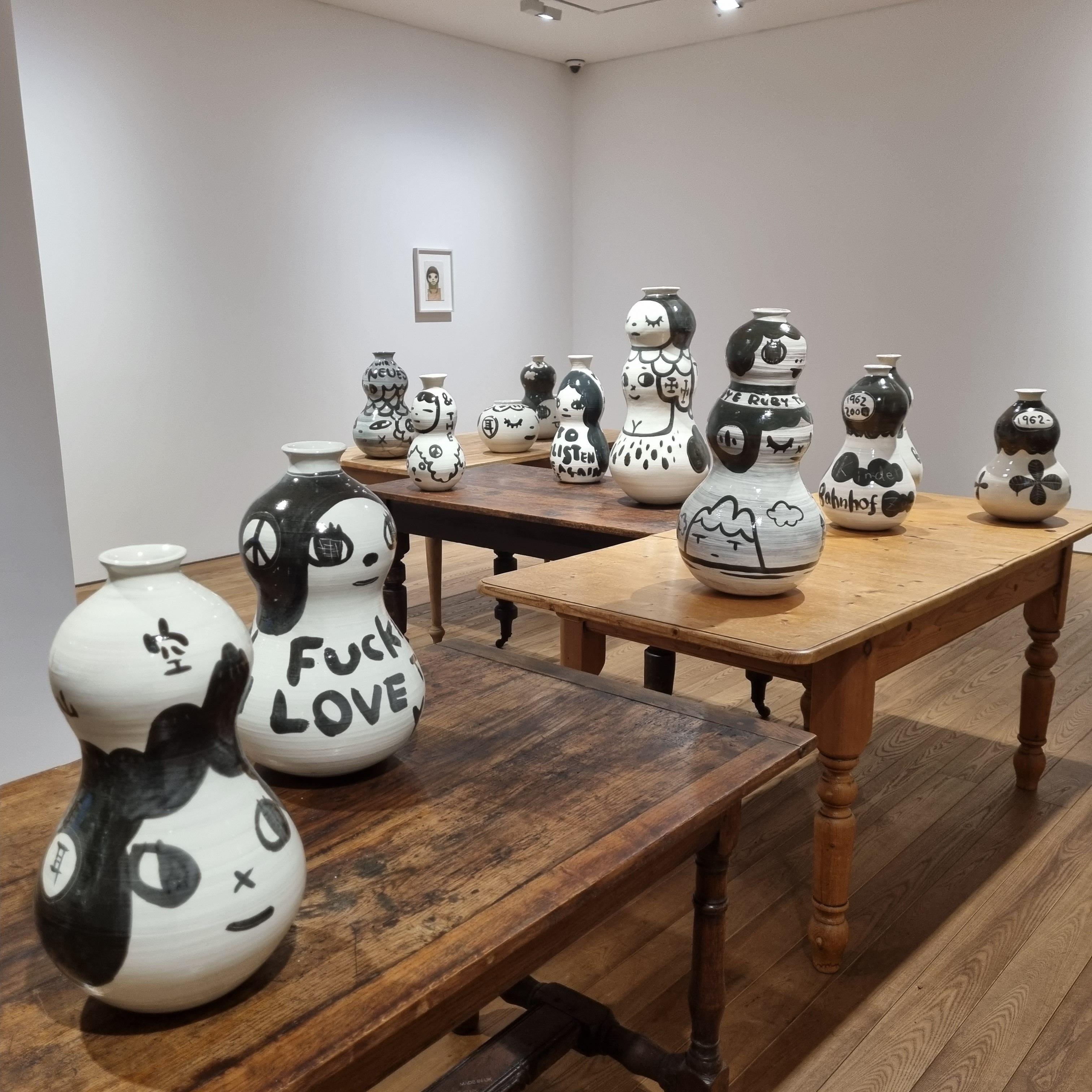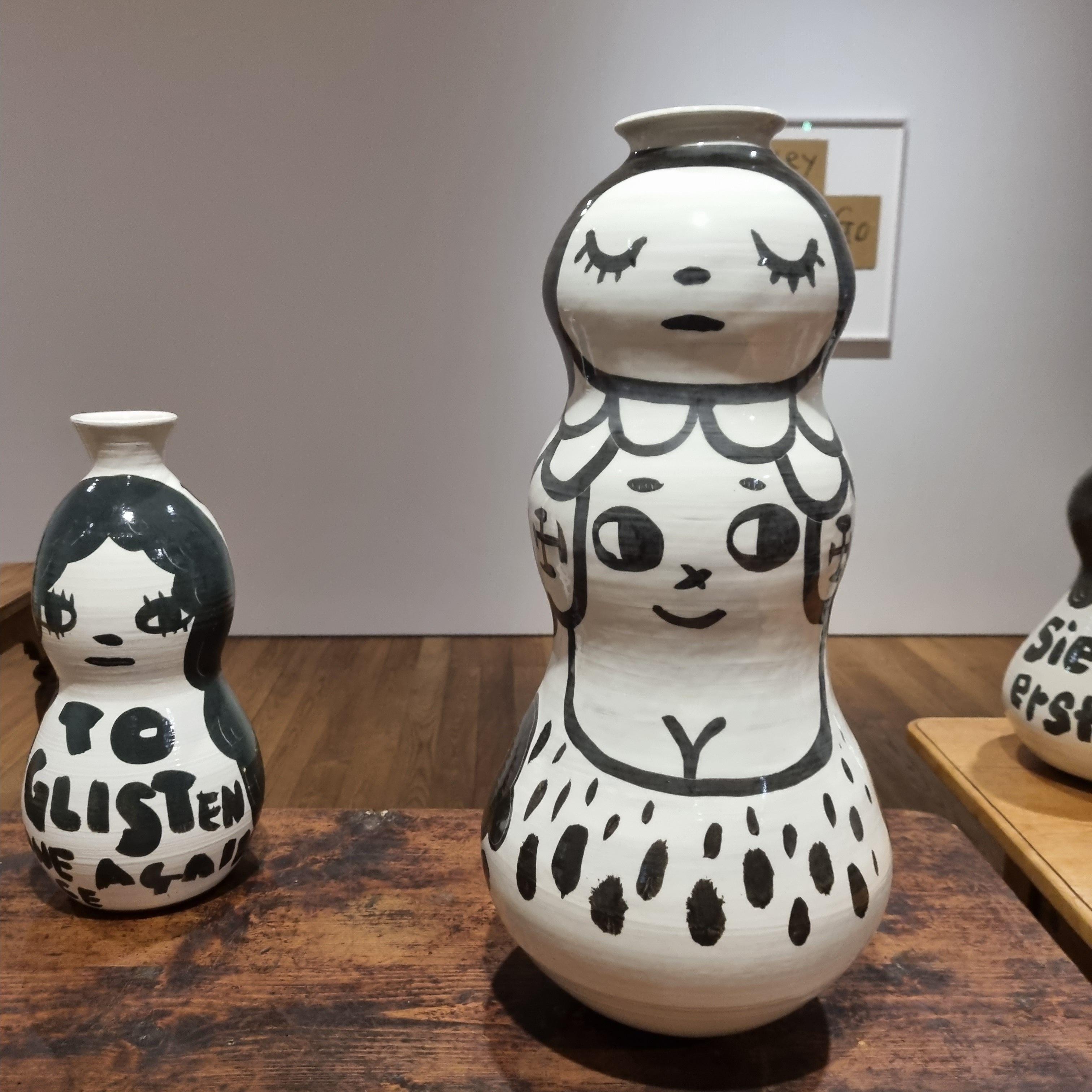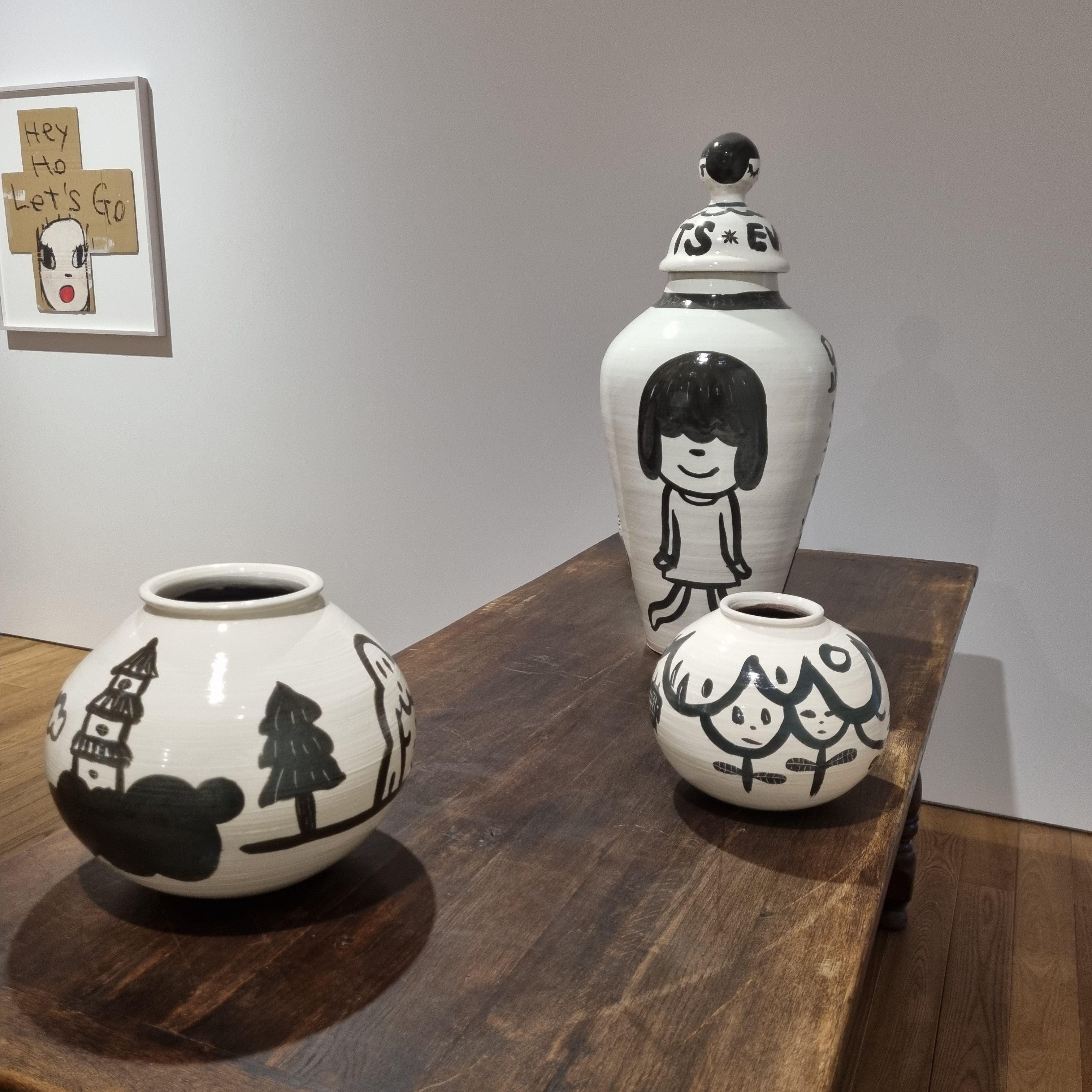 귀엽기도 하면서 동시에 섬뜩한 요시모토 나라 스타일의 얼굴들이 그려진 도자기들이 전시장을 가득 채우고 있습니다.
