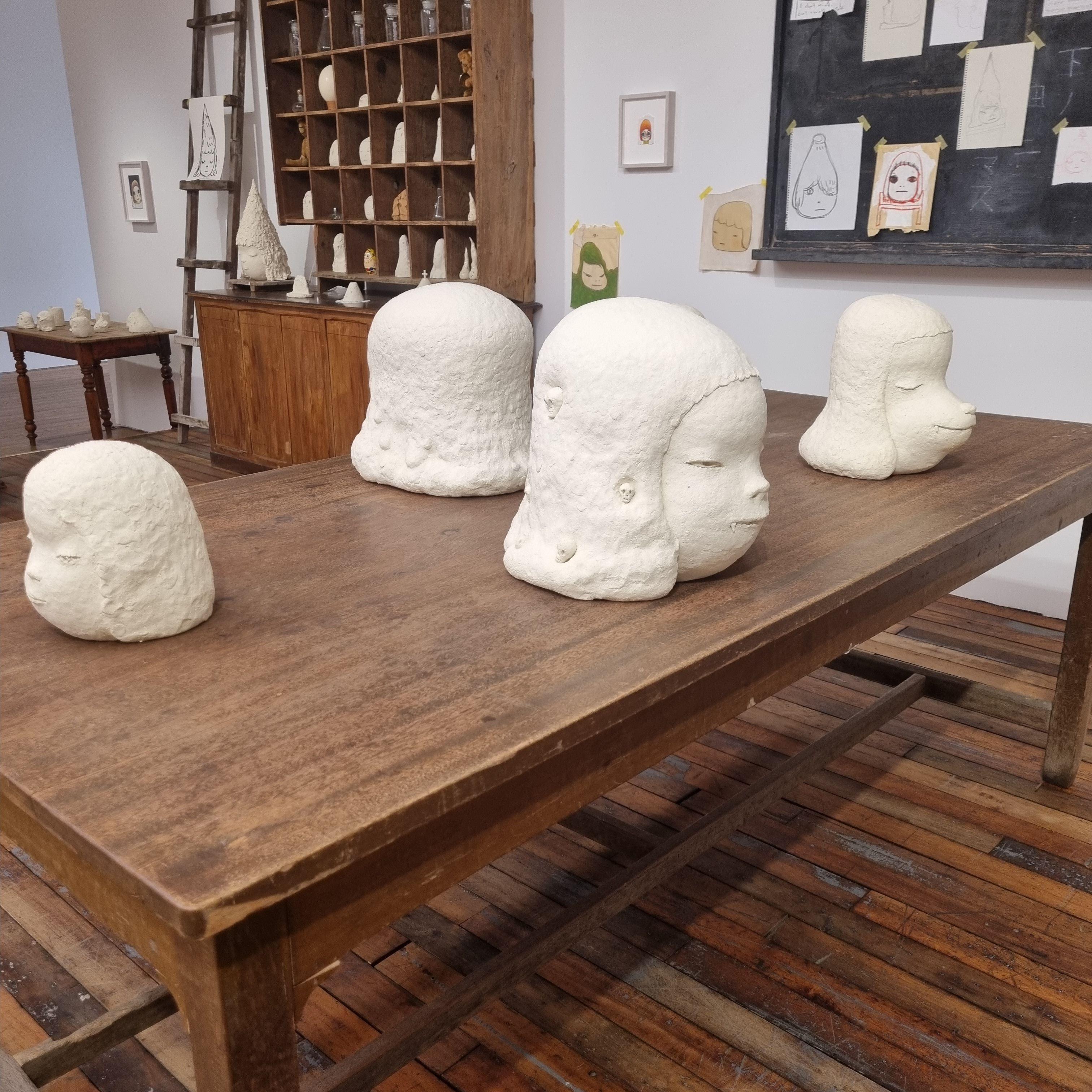 독특한 모양과 질감, 그리고 표면 위에 나라가 그린 얼굴들과 메세지들은 각 작품에서 정서적이고 심리적인 의미를 첨가합니다.