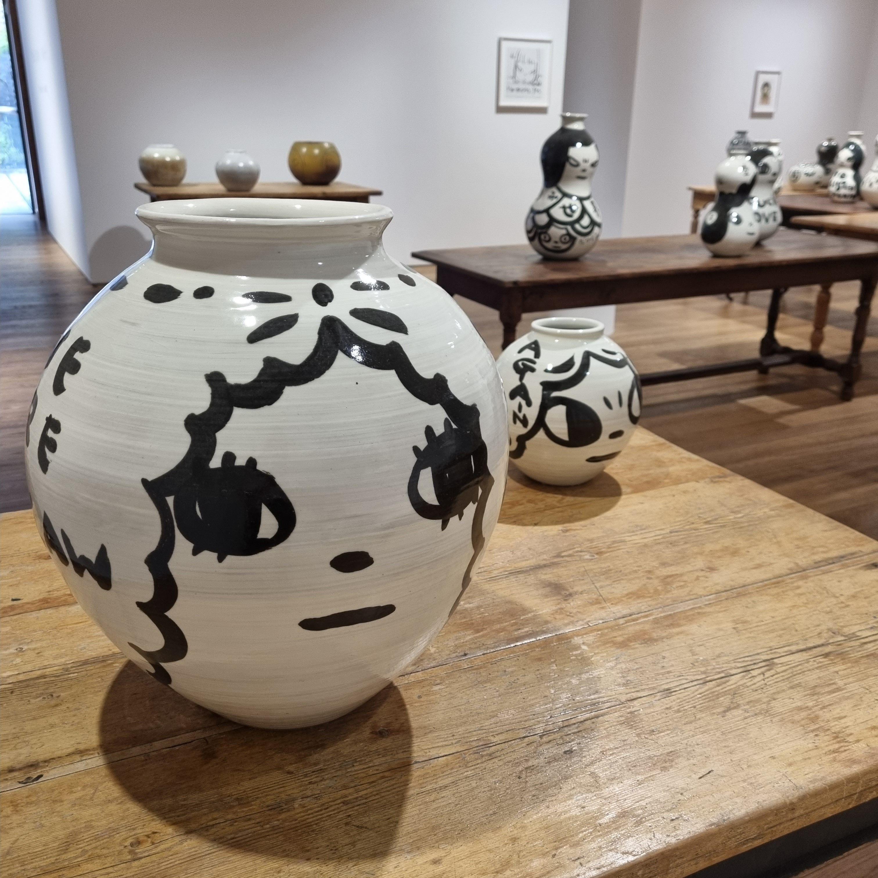 귀엽기도 하면서 동시에 섬뜩한 요시모토 나라 스타일의 얼굴들이 그려진 도자기들이 전시장을 가득 채우고 있습니다.