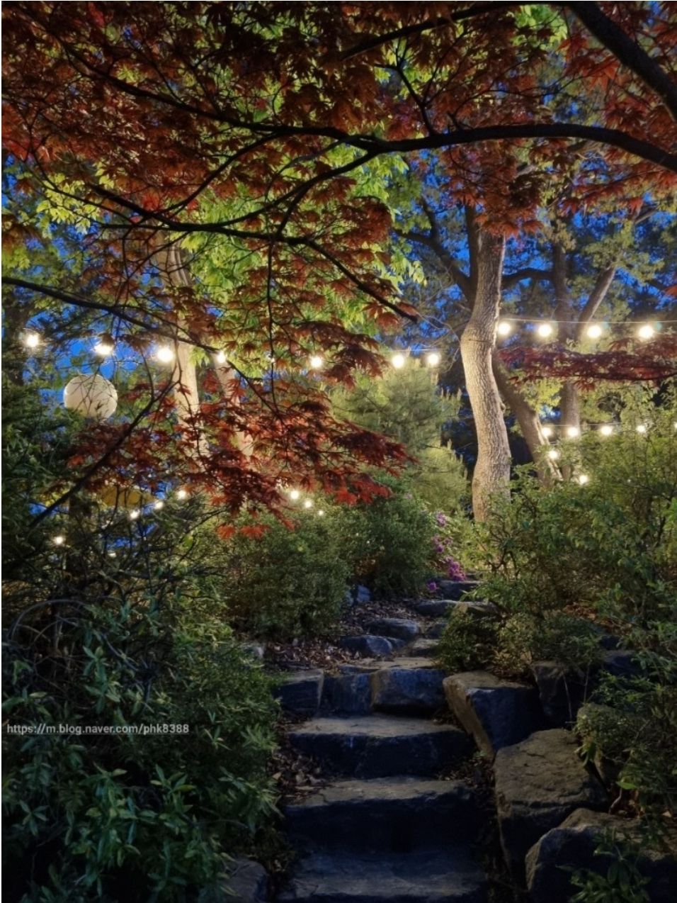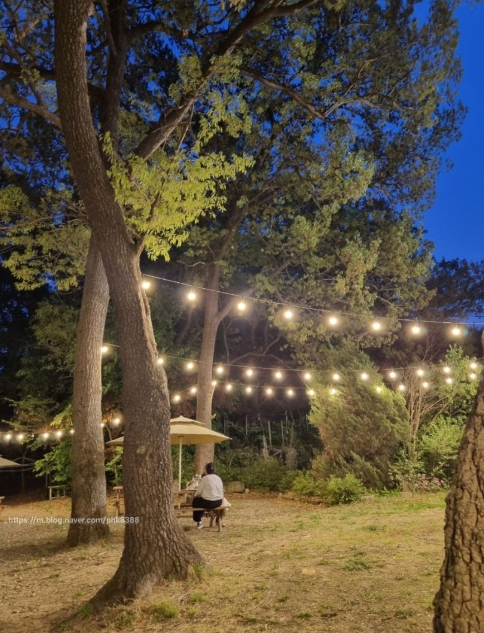 가게 옆과 뒷편에 정원처럼 예쁘게 꾸며져있는 공간이 있습니다. 해가 지면서 알전구를 켜놓아서 너무 예뻤습니다.