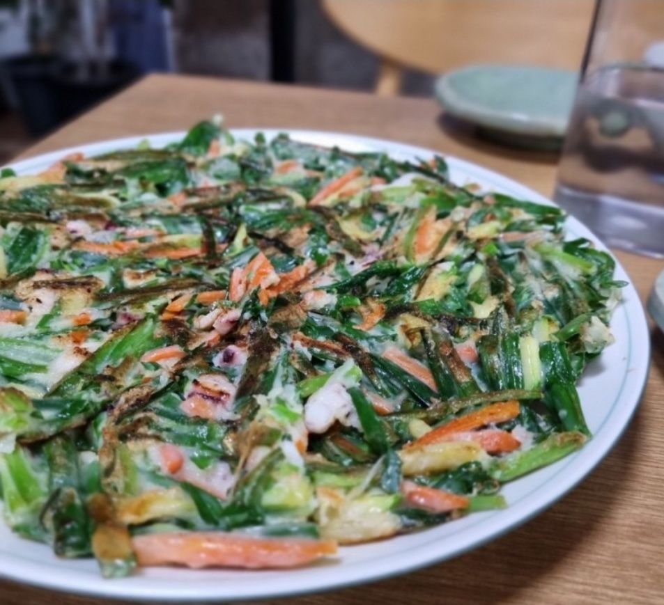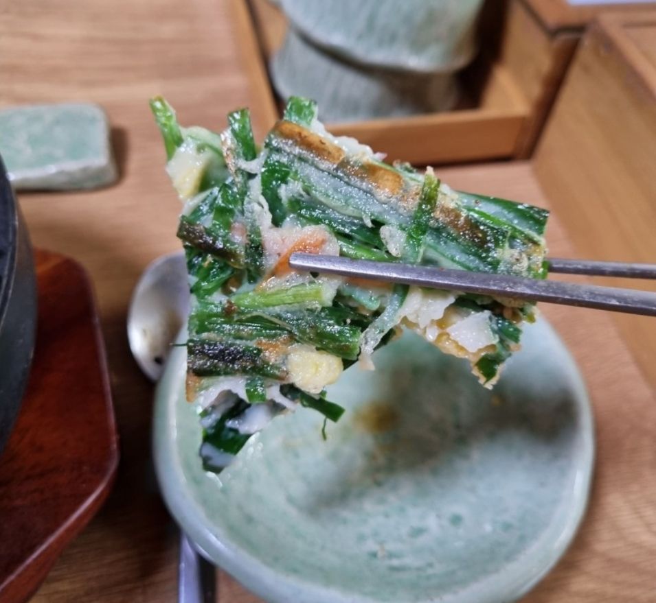 돌솥비빔밥을 인당 하나씩 주문했는데도 부추야채전이 궁금했던 우리는 부추야채전을 주문해봤습니다.