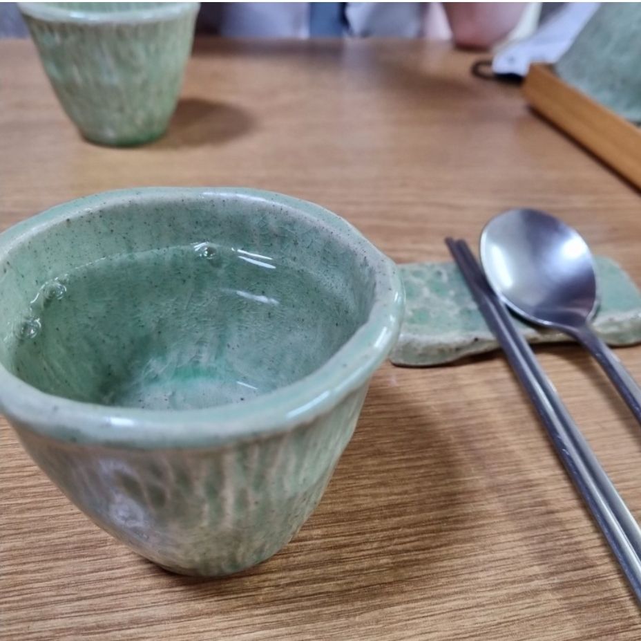 주차도 넓어 편했고 매장안도 깔끔합니다. 물컵과 수저받침도 수제로 만든 도자기느낌.