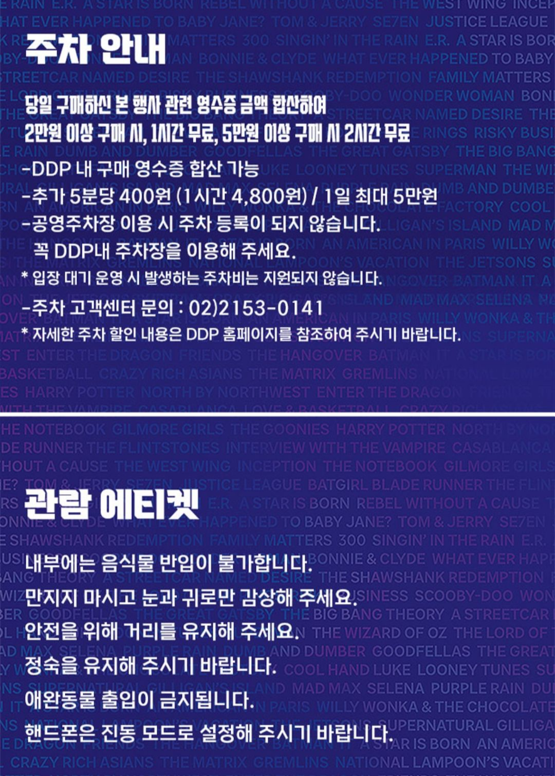동대문디자인플라자 주차는 당일 구매한 행사 관련 영수증 금액 합산하여 2만원 이상 구매시 1시간 무료, 5만원 이상 구매시 2시간 무료입니다.