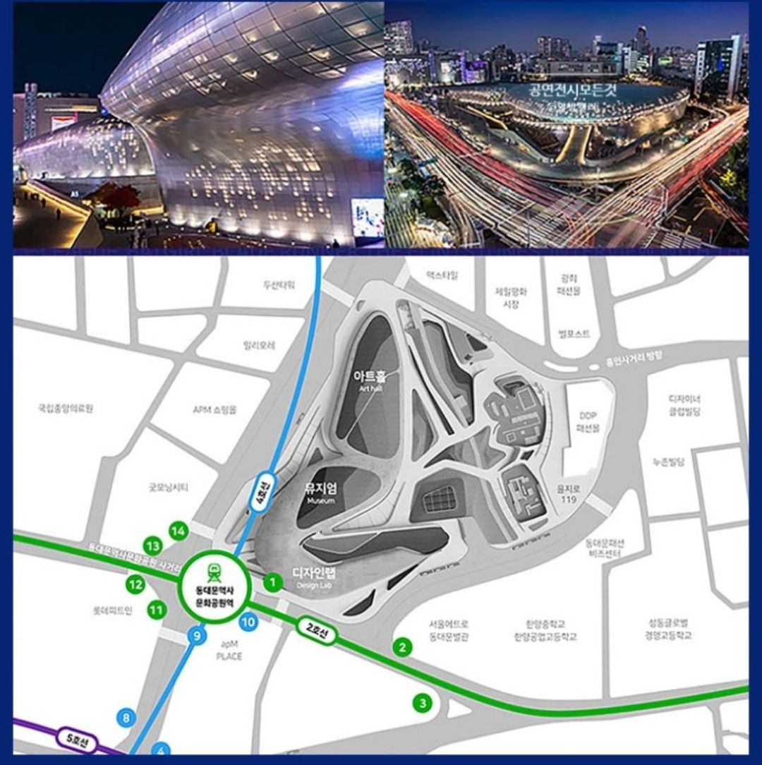 지하철 2,4,5호선 동대문역사공원 1번 출구(도보 3분)에서 어울림광장 지나면 바로 뮤지엄 입구이니까 대중교통으로 오셔도 편할 것 같습니다.