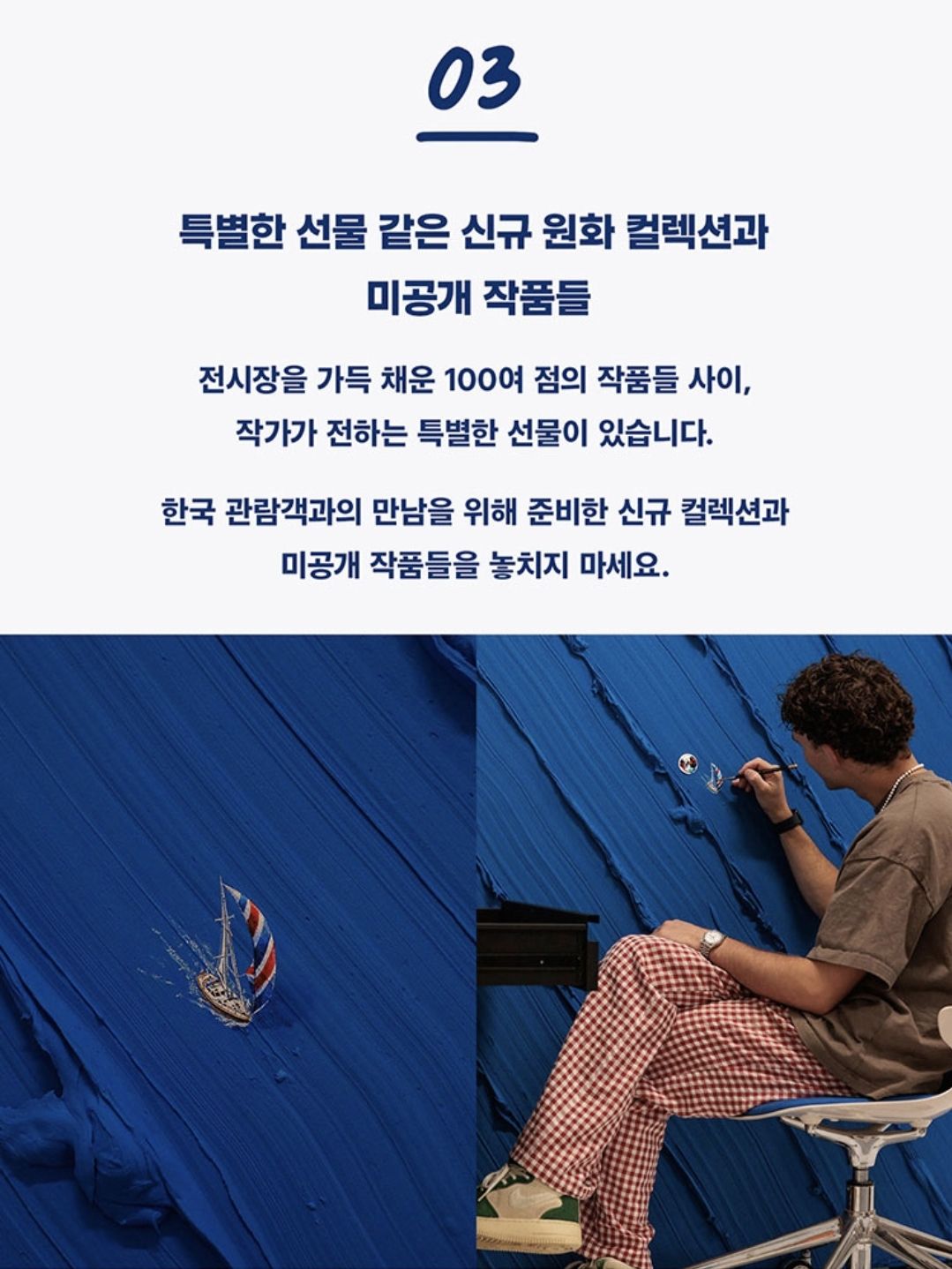 다섯번째 섹션에서는 이번 한국 전시만을 위해 특별 제작한 신규 원화 컬렉션과 세상에 선보인적 없던 미공개 대표작으로 가득찬 공간으로 꾸며져 있으며