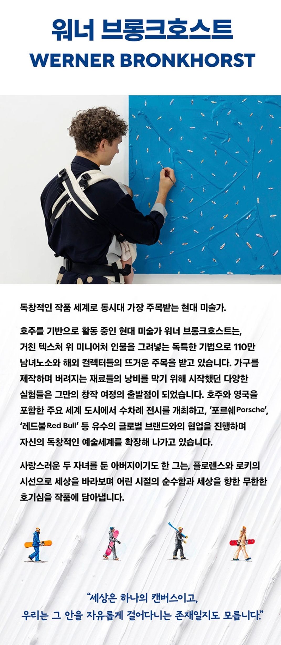 워너 브롱크호스트의 전시 < 온 세상이 캔버스 >에서는 한국 관람객을 위해 새롭게 제작한 원화 컬렉션과 그의 대표적인 작품 100여 점을 선보입니다.