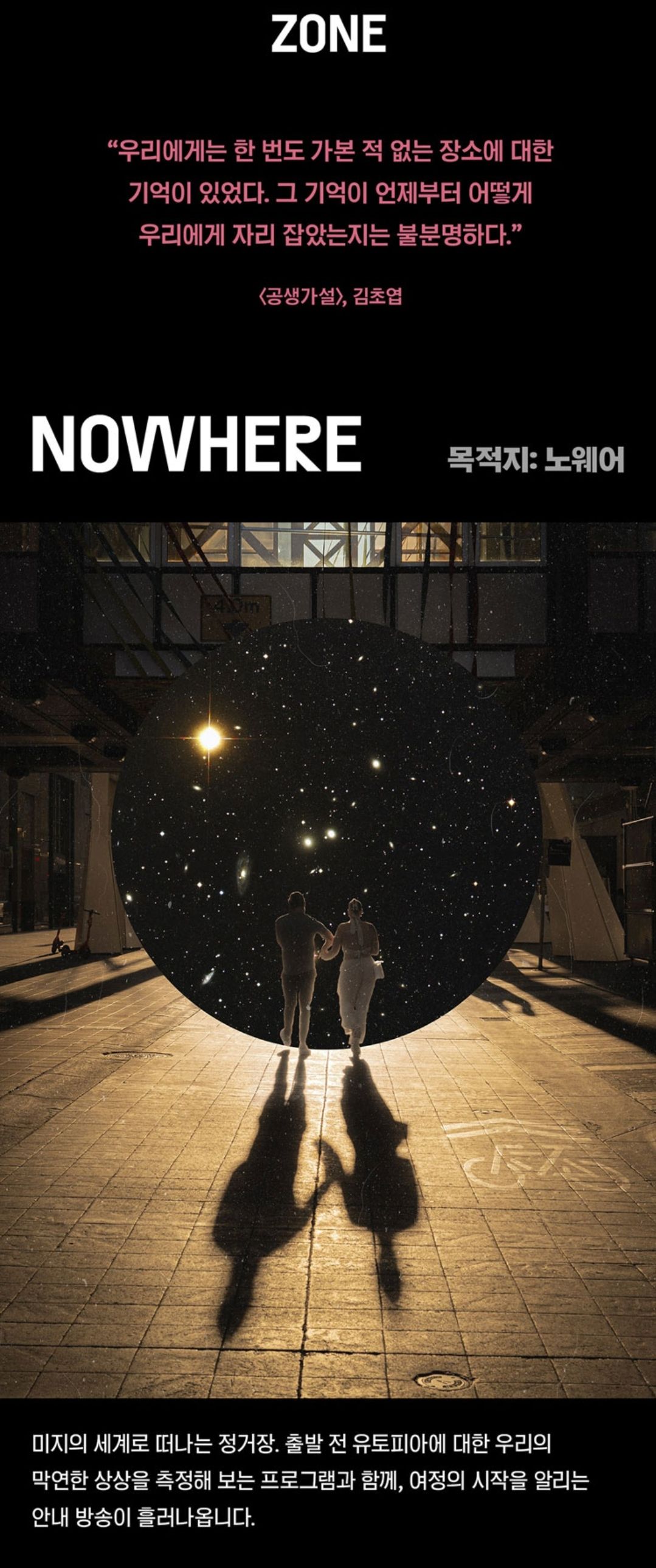 소설가 김초엽, 국내외 초현실주의 아티스트 7인이 함께하는 <유토피아 : 노웨어, 나우 히어> 전시가 그라운드시소 성수에서 열립니다.