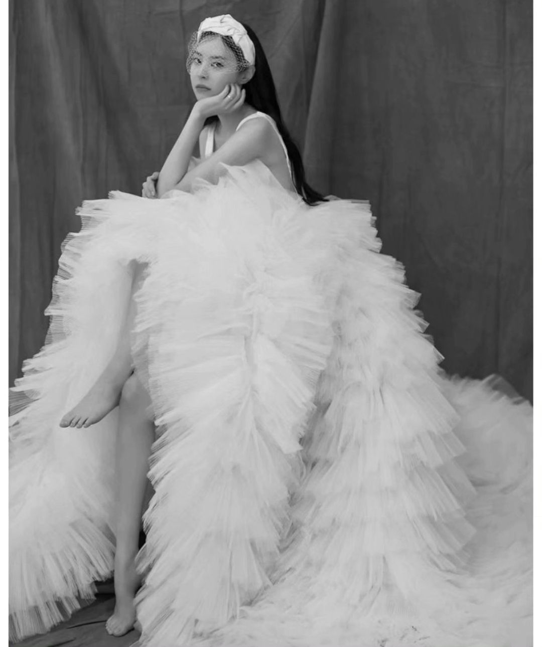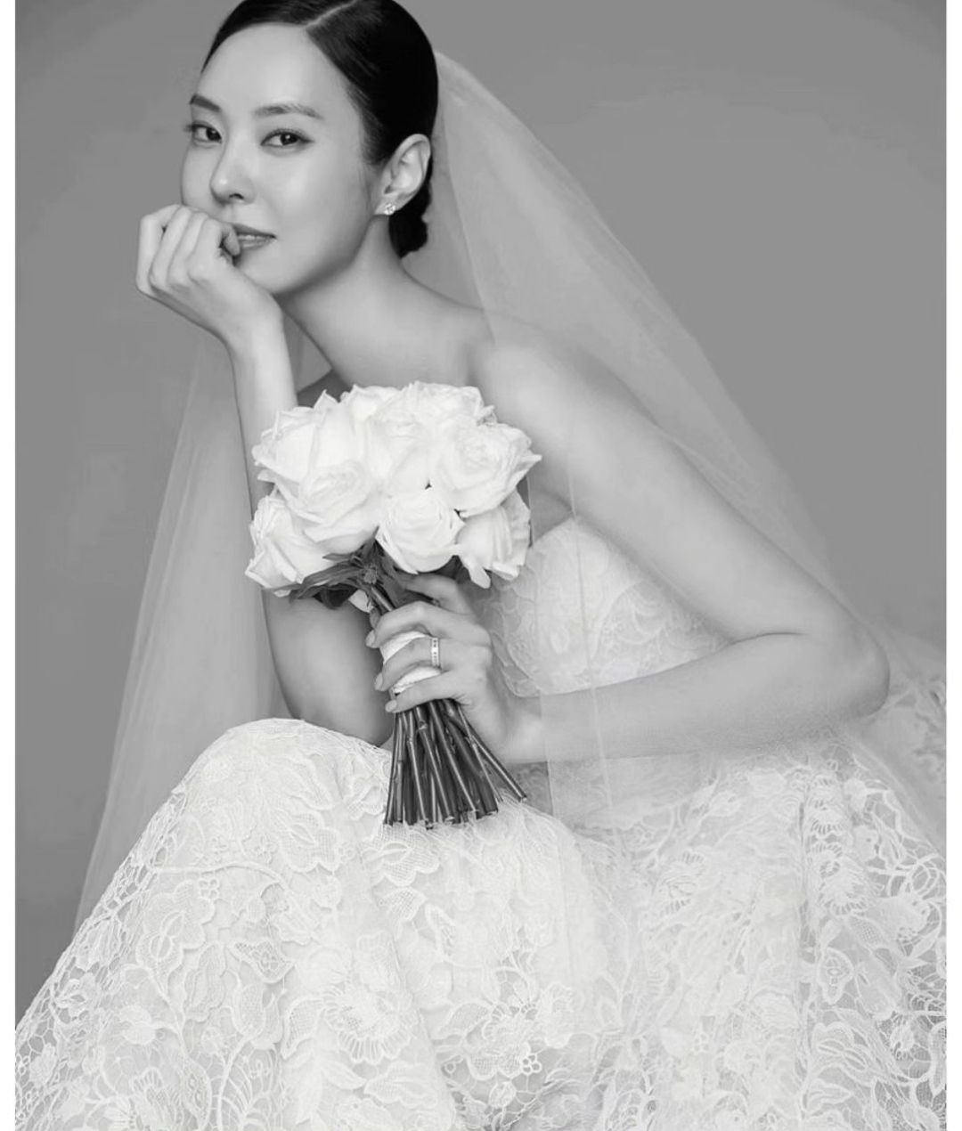 심플한 탑에 이중으로 된 롱베일, 깔끔한 올백헤어까지 클래식웨딩의 정수라고 할 수 있겠습니다.