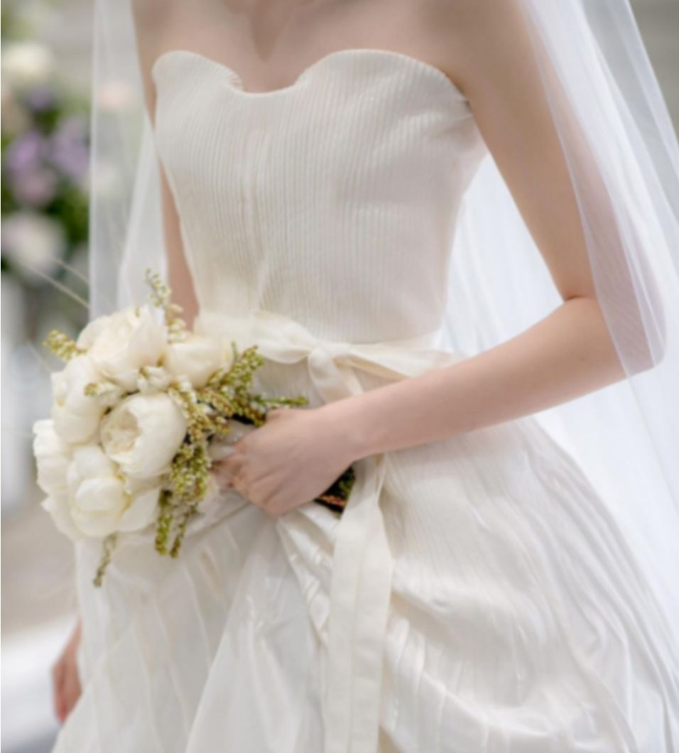 그녀가 선택한 본식드레스는 예상대로 실크로 된 심플한 탑디자인이었습니다.