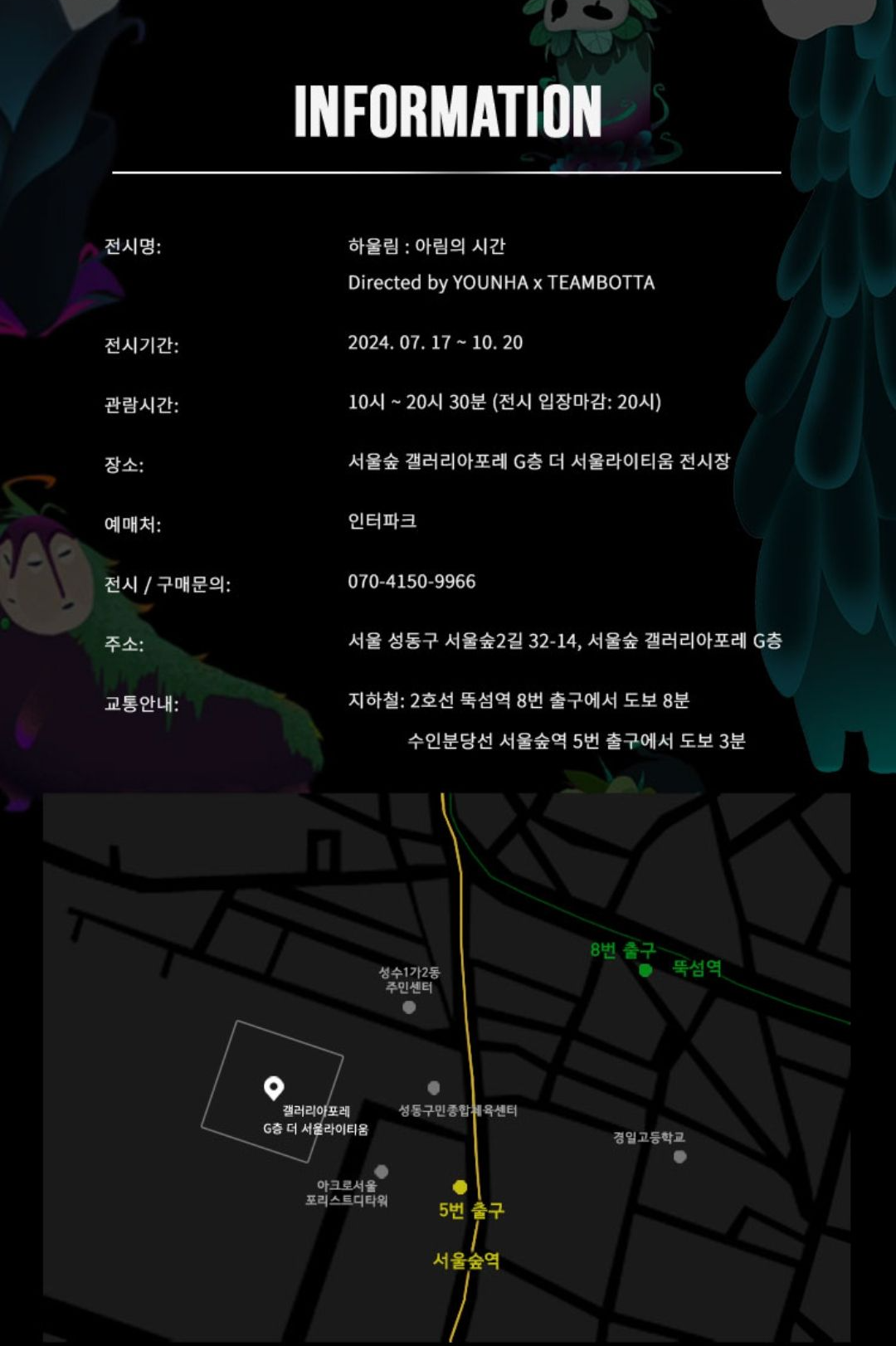 가수 윤하의 데뷔 20주년 프로젝트의 하나로 윤하와 팀보타가 함께 기획하고 작업한 전시라고 합니다.