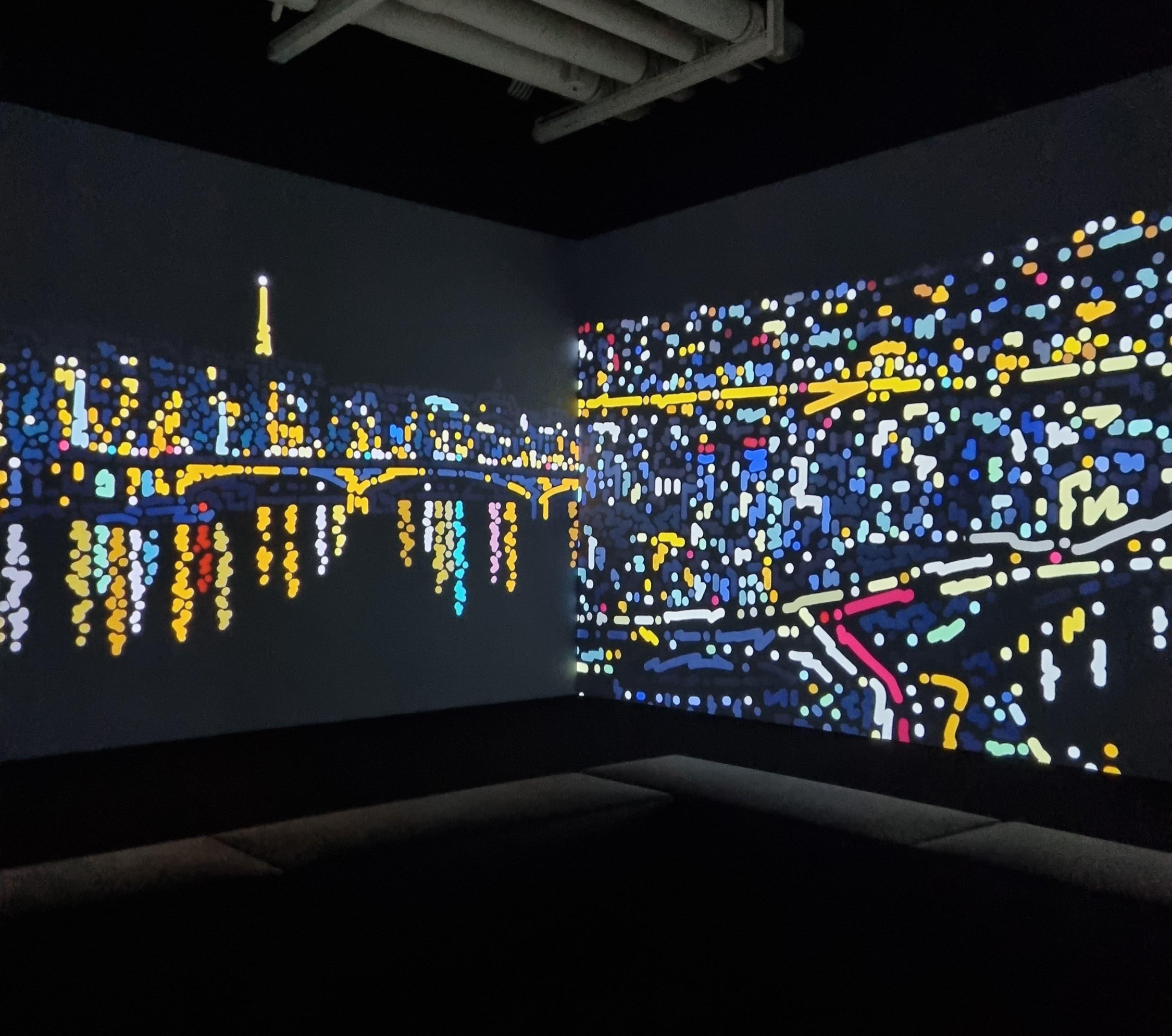 작품들을 보고 있으면 조금씩 색이 첨가되거나 없어지거나 움직이는 형태로 해놓아서 그냥 강변에 앉아 밤의 야경을 바라보고 있는 것처럼 힐링이 되더라구요.