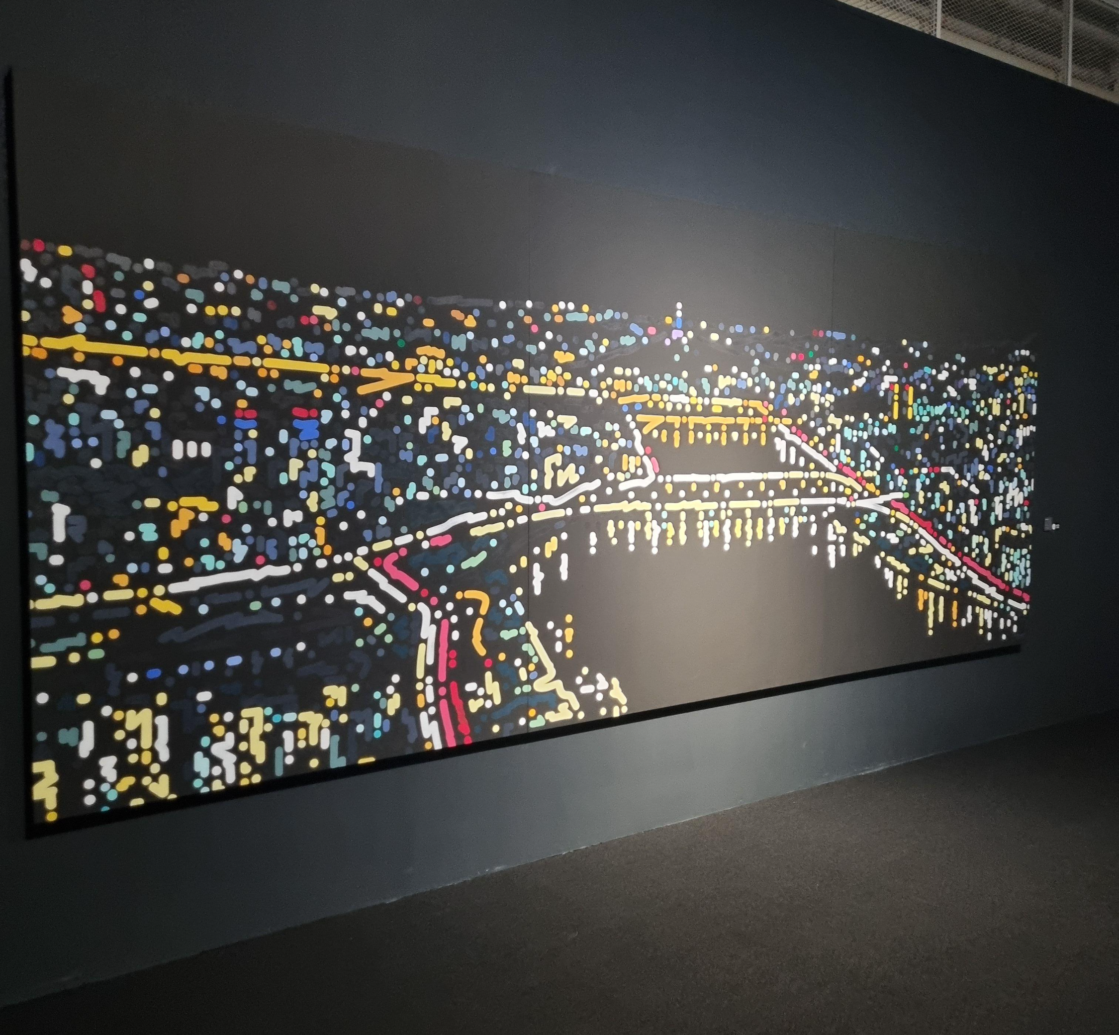 전시장 마지막에 윤협 작가의 도시야경 대형 파노라마 작품을 미디어 아트로 구성해 놓은 공간이 있는데 여기서 한 10분정도 앉아서 멍하니 보고 나왔습니다.