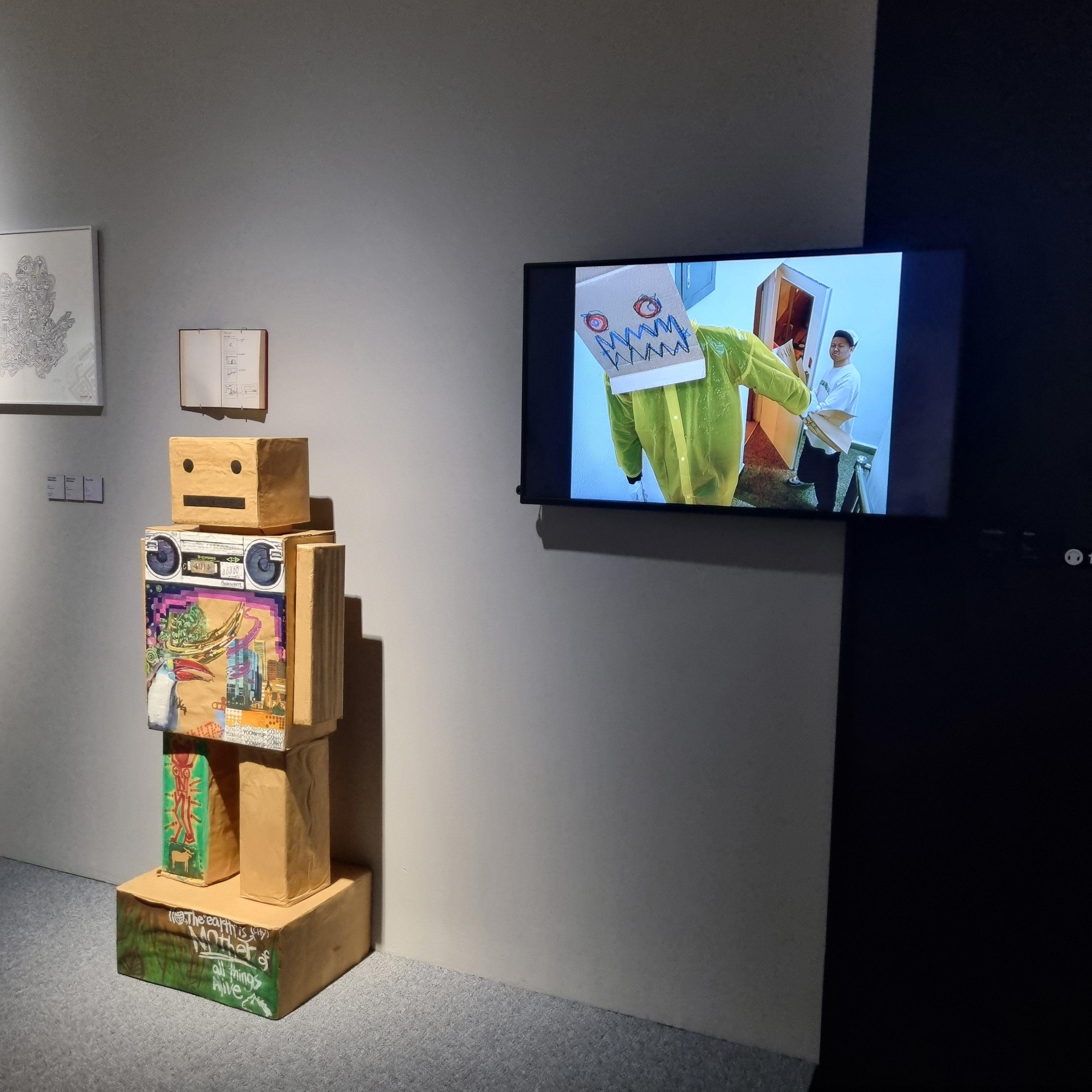 <캐러멜 보이>라는 영상은 작가가 백남준 <로봇 K-456>이 뉴욕 휘트니 미술관 전시에서 자동차에 치여 최후를 맞는 퍼포먼스 작품에 영감을 받아 제작하게 되었는데,