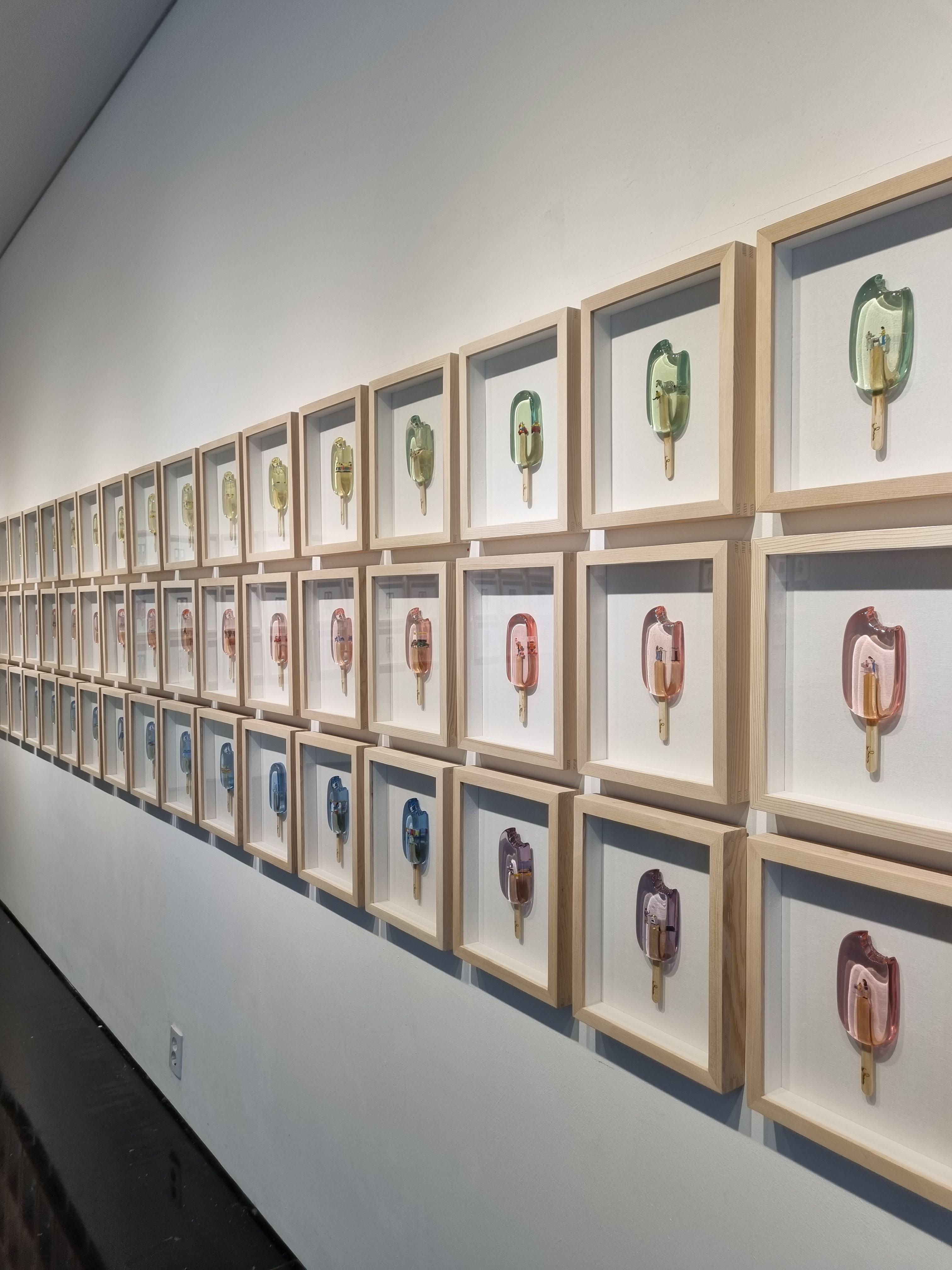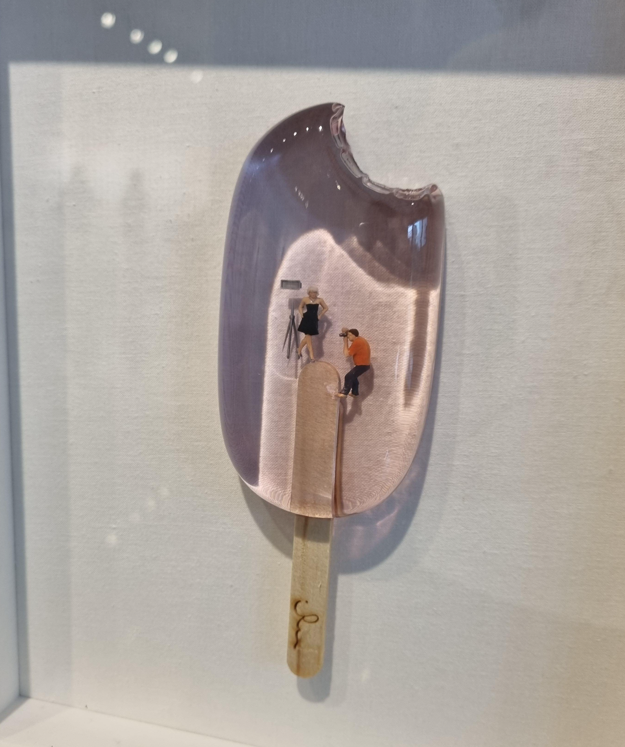 한 입 베어문 투명한 아이스크림 속 오브제들은 너무 작아 작품 가까이 다가가야 어떤 형상인지 보여요.