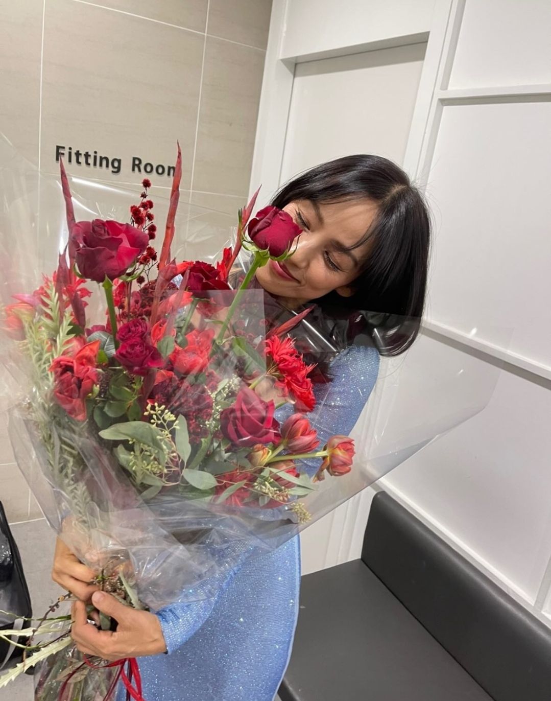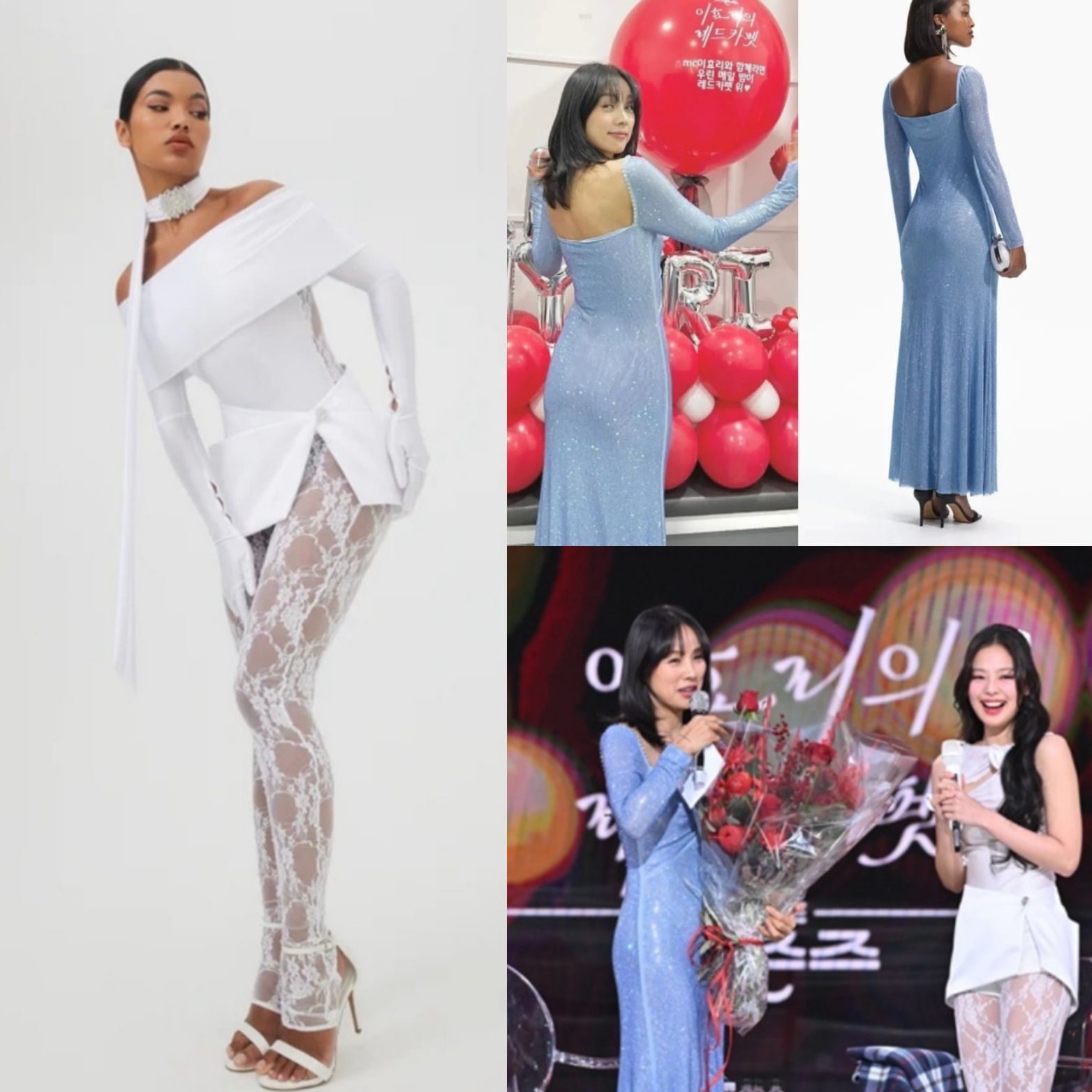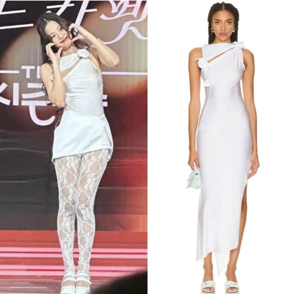제니가 착용한 원피스는 프랑스 패션 브랜드인 코페르니의 로즈 아플리케 드레스이고, 상체에 입체적인 장미모양이 들어간 롱 드레스인데 발레코어룩으로 짧게 변형한 것 같습니다.